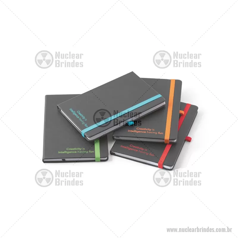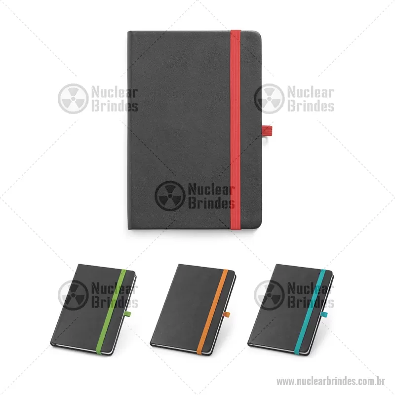 Bloco / Caderno A5 com capa dura em PU com 160 páginas pautadas. Caderno A5 de capa dura em PU com substrato colorido permitindo a gravação a laser da cor do elástico. Contém 160 páginas pautadas, elástico, fita separadora, suporte para esferográfica (não inclusa) e bolso em papel na parte traseira da capa. Medidas do produto: 14,0 x 21,0 cm - Brindes Personalizados - NUCBLC181