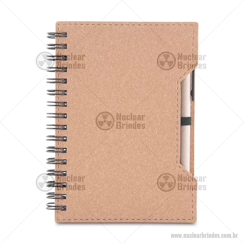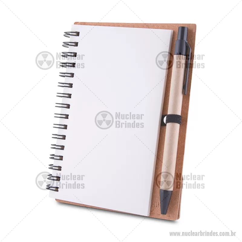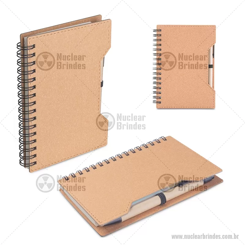 Bloco/ Caderno A6 capa em papelão reciclado com caneta Kit composto por caderno com capa em papelão, com miolo de 70 folhas sem pauta em papel 70g/m². Acompanha caneta confeccionada em papelão reciclado com detalhes em plástico. com sticky notes para anotações. Dimensão Produto: 14,5x11cm Dimensão do Produto: 13,7x0,9cm (Caneta) Peso do Produto: 0,120kg - Brindes Personalizados - NUCBLC276