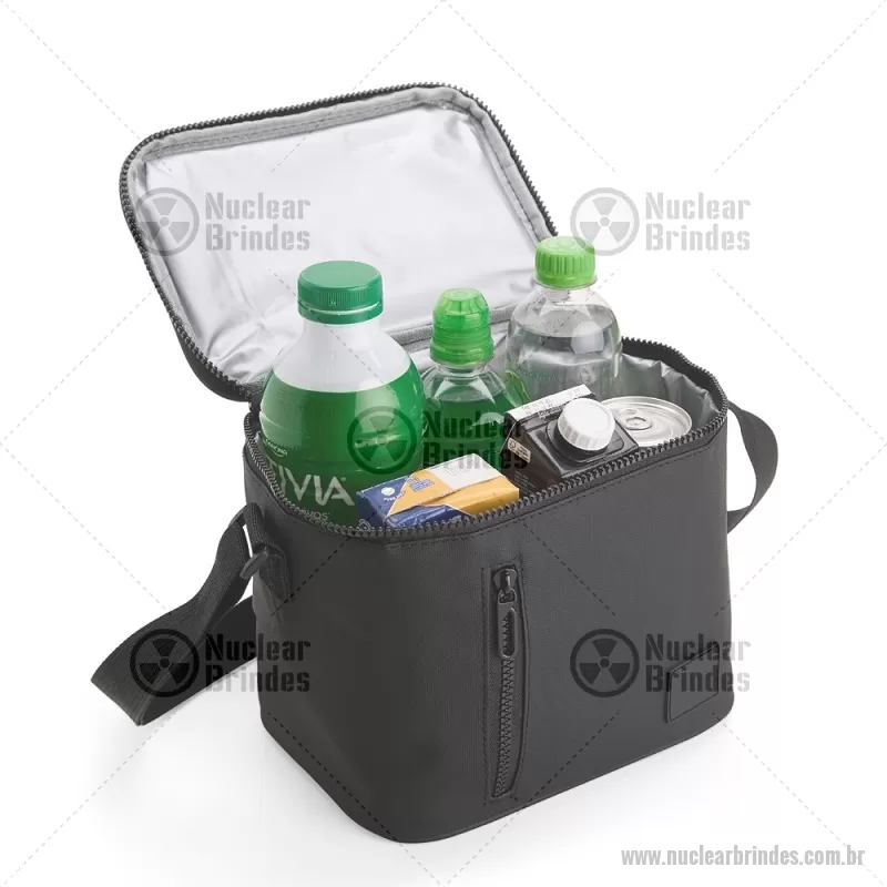 Bolsa Térmica 6 Litros Bolsa térmica confeccionada em poliéster mesclado com PVC impermeável, fechamento por zíper e capacidade máxima de 6 litros. Possui revestimento térmico em PEVA atóxico, o que ajuda a conservar a temperatura de alimentos e bebidas por mais tempo. Conta também com bolso frontal com zíper, placa emborrachada para personalização, possui ainda alça de mão e alça transversal, oferecendo praticidade e conforto no transporte. Altura : 18 cm x Largura : 22,5 cm x Profundidade : 15 cm Peso aproximado (g): 266 Perfeita para o dia a dia, passeios, trabalho ou viagens. - Brindes Personalizados - NUCBT115