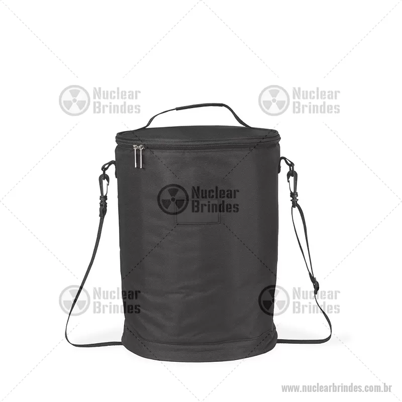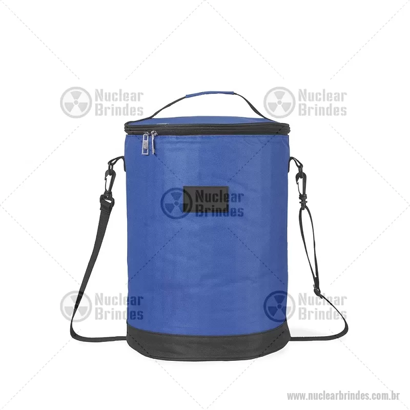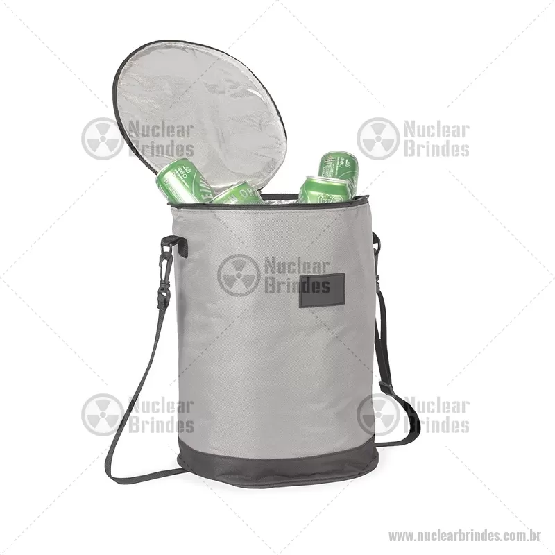 Bolsa térmica em formato cilíndrico com capacidade de até 25 litros. Confeccionada em Oxford, conta com revestimento térmico em folha de alumínio que ajuda a manter a temperatura de alimentos e bebidas conservados por mais tempo em seu amplo compartimento interno. Possui alça de ombro ajustável e removível, além de outra alça fixa localizada na tampa. Altura : 34,5 cm x Largura : 27 cmx Profundidade : 26 cm Peso aproximado (g): 266 - Brindes Personalizados - NUCBT110