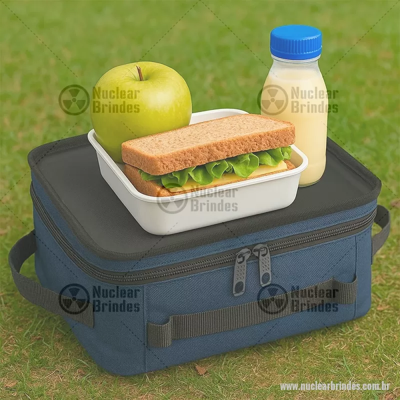 Bolsa Térmica 5 Litros Descrição: Bolsa térmica compacta feita em poliéster resistente à água com capacidade máxima de 5 litros. Apresenta revestimento térmico interno em PEVA atóxico, o que possibilita a conservação da temperatura de alimentos e bebidas por mais tempo. Conta ainda com alças laterais em nylon e tampa de base firme que pode ser usada como bandeja para refeições. Altura : 12 cm x Profundidade : 13cm x Comprimento : 17 cm Peso aproximado (g): 297 - Brindes Personalizados - NUCBT091