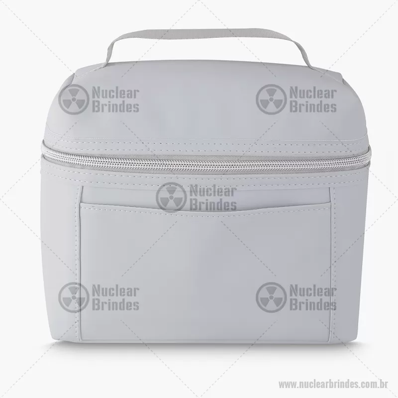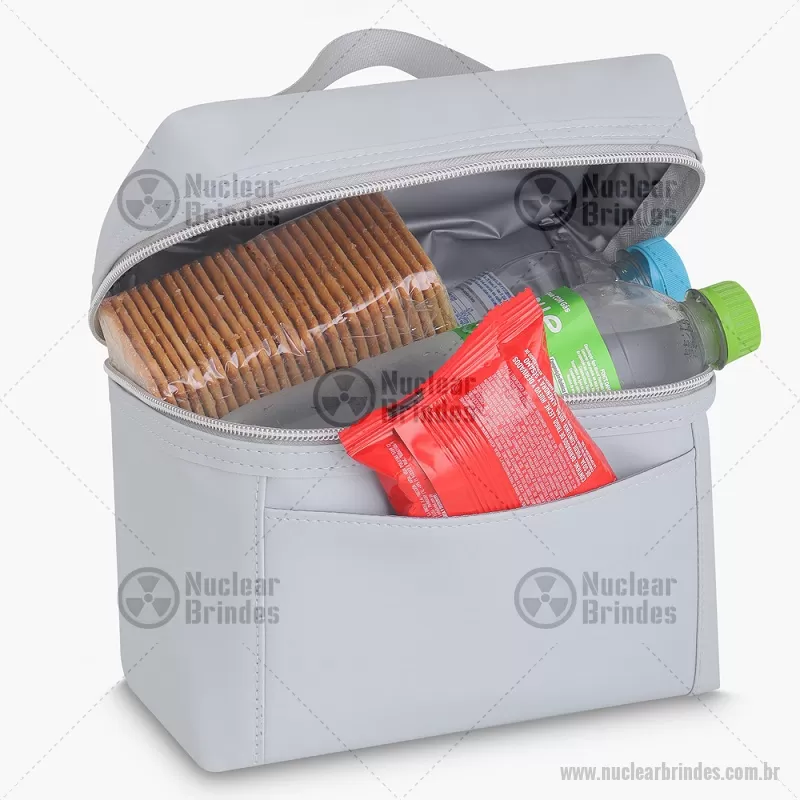 Bolsa térmica 5 lts em PU com zíper, parte interna costurada, com alça de mão e bolso frontal. Dimensão Produto: 18x21,5x13cm (AxLxP) Peso do Produto: 0,150kg Volume: 5L - Brindes Personalizados - NUCBT095