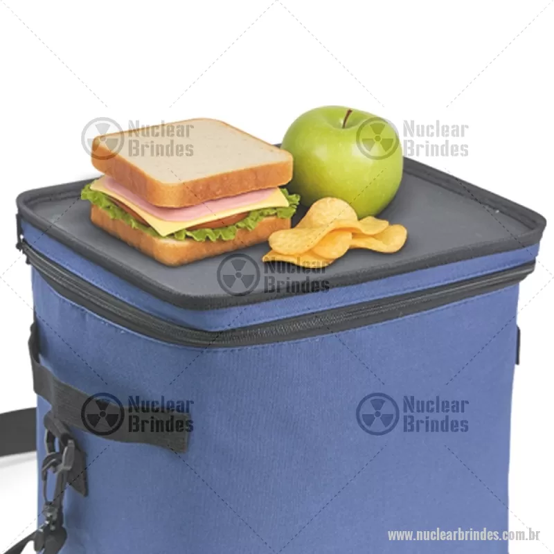 Bolsa Térmica 20L Prática e funcional! Confeccionada em poliéster resistente à água e possui revestimento interno em PEVA atóxico e soldado, que evita vazamentos e garante segurança no armazenamento de alimentos. Sua tampa rígida funciona também como bandeja, tornando o uso ainda mais funcional, ideal para refeições em ambientes externos. Conta com alças laterais para transporte manual e alça transversal removível com ajuste e suporte de apoio, proporcionando mais conforto no transporte. Altura : 28 cm x Largura : 26 cm x Profundidade : 22,5 cm Peso aproximado (g): 486 - Brindes Personalizados - NUCBT092