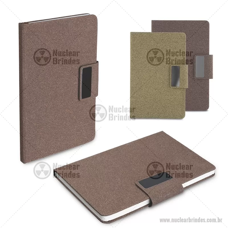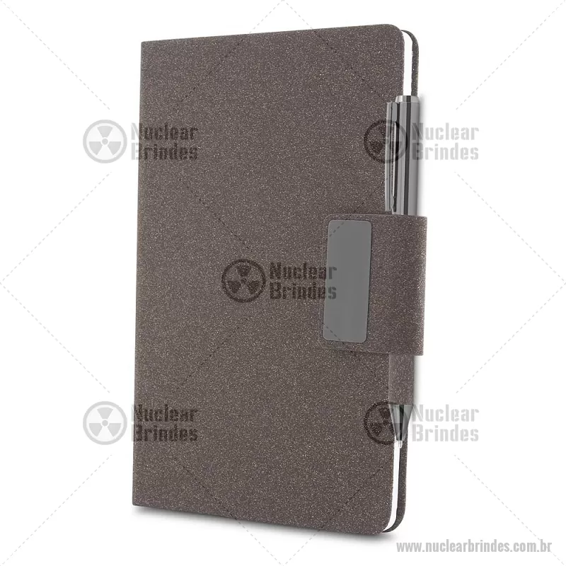 Caderno A5 em PU e fibra de café ou chá. Caderno de anotações com capa em PU e fibra de chá ou café, 80 folhas 70 g/m², engate para caneta com fechamento magnético e placa de metal,não acompanha caneta. Peso do Produto: 0,236kg Dimensão do Produto: 20,7x13,2cm - Brindes Personalizados - NUCBLC273