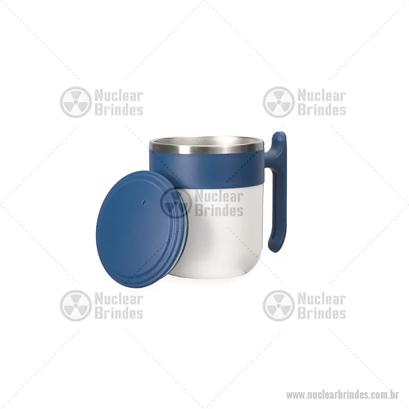 Caneca Inox 350ml Caneca com design moderno, feita em plástico com interior em inox e capacidade de até 350ml. Ela possui revestimento externo, alça e tampa de encaixe em plástico, além da base emborrachada antiderrapante para oferecer mais segurança durante seu uso. Altura : 11 cm x Largura : 11,4 cm x Circunferência : 27 cm Tamanho total aproximado (CxL): Diâmetro: 8,5 Peso aproximado (g): 145 - Brindes Personalizados - NUCCAN097
