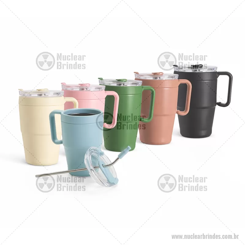 Caneca térmica de 600 ml em inox com pintura eletrostática, ideal para manter suas bebidas na temperatura por mais tempo. Possui parede dupla e tampa plástica com vedação, além de protetor emborrachado no bocal com acesso para canudo, garantindo mais praticidade no uso. Conta com base antiderrapante para maior estabilidade e acompanha canudo em inox com ponta removível em plástico, proporcionando mais conforto ao beber. Funcional e moderna, é perfeita para o dia a dia com estilo e praticidade. Altura : 15,6 cm x Largura : 13,4 cm x Circunferência : 30,3 cm Peso aproximado (g): 317 - Brindes Personalizados - NUCCAN103