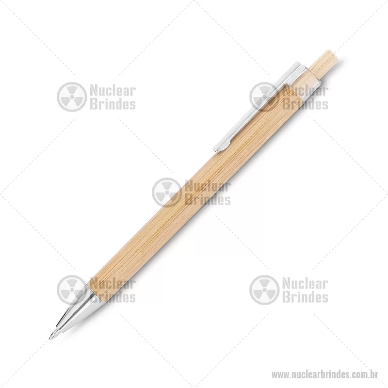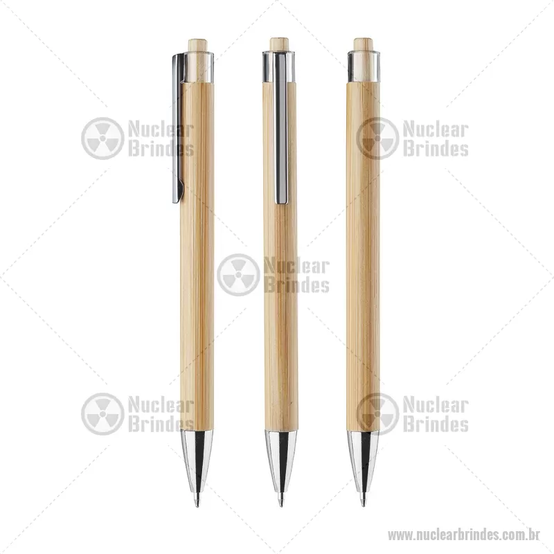 Caneta com corpo em bambu, acionador em bambu com detalhe plástico, ponteira e clipe cromado. Dimensão Produto: 14xø1cm Peso do Produto: 0,007kg - Brindes Personalizados - NUCCPECO072