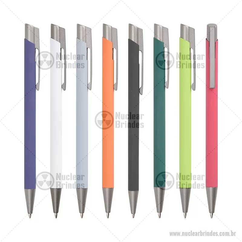 Caneta esferográfica azul 1,0 mm com corpo totalmente metálico e acionamento por clique. Leve e confortável, oferece escrita suave e precisa para o uso diário. - Brindes Personalizados - NUCCMT299