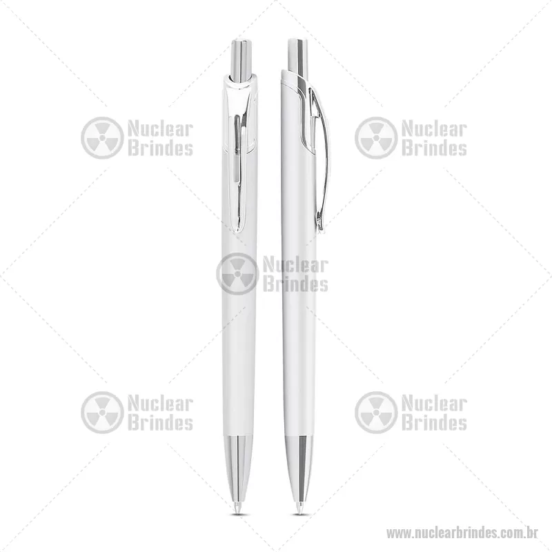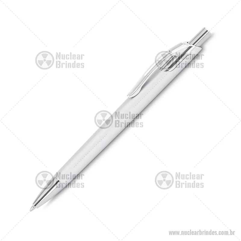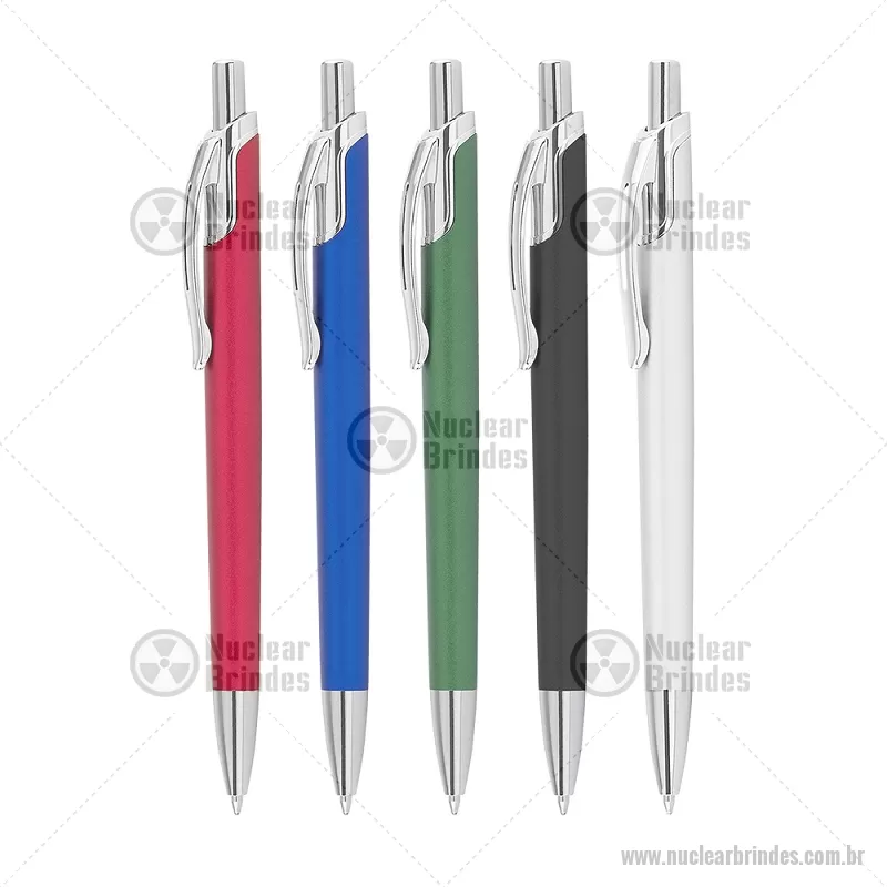 Caneta com corpo em alumínio reciclado, acionador e clipe cromado, escrita esferográfica em azul. Peso do Produto: 0,016kg Dimensão do Produto: 14ø1cm - Brindes Personalizados - NUCCMT305