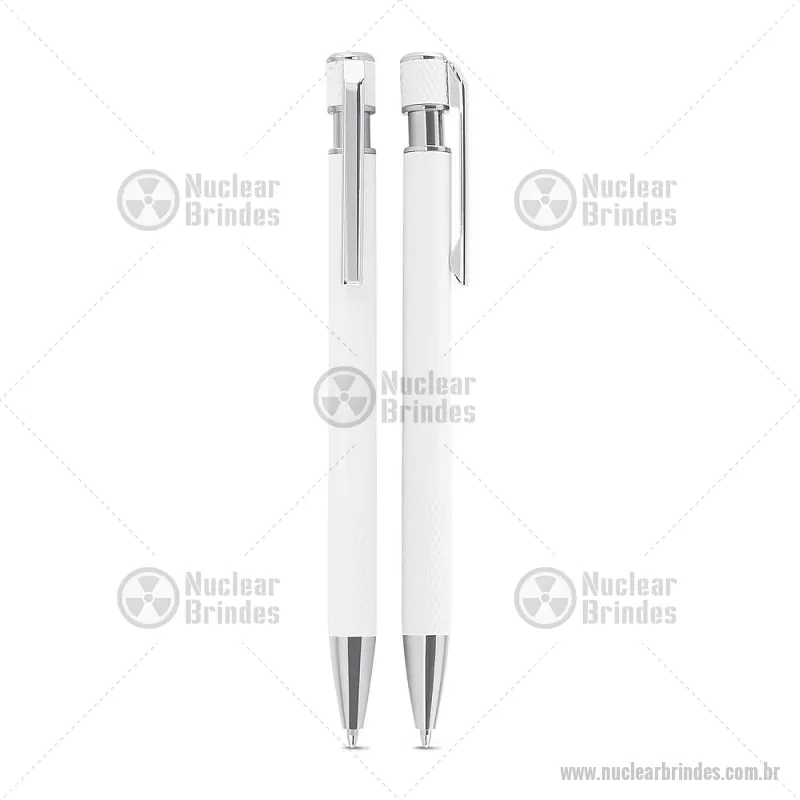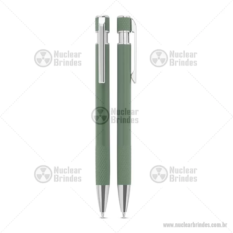 Caneta esferográfica com corpo em alumínio reciclado, acionador e clipe cromado, escrita em tinta azul. Refil substituível tipo Parker. Peso do Produto: 0,016kg Dimensão do Produto: 13,6xø0,9cm - Brindes Personalizados - NUCCMT306
