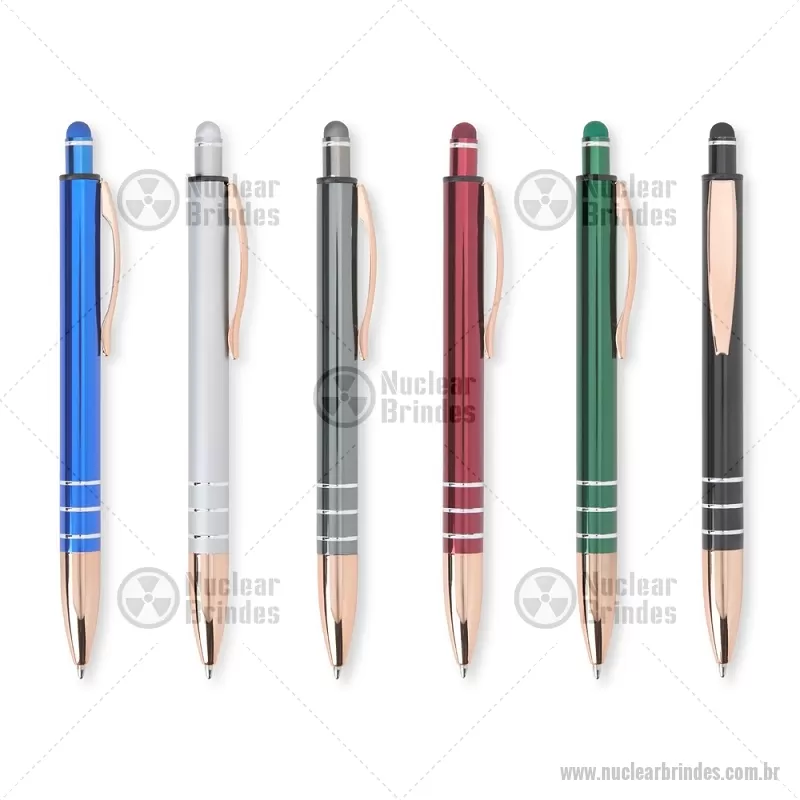 Caneta Metal Touch Caneta metálica com acionador touch, clipe metálico e ponteira plástica. Carga esferográfica azul 1.0mm e acionamento por clique. Largura : 1,6 cm x Comprimento : 14,4 cm Peso aproximado (g): 17 - Brindes Personalizados - NUCCMT291