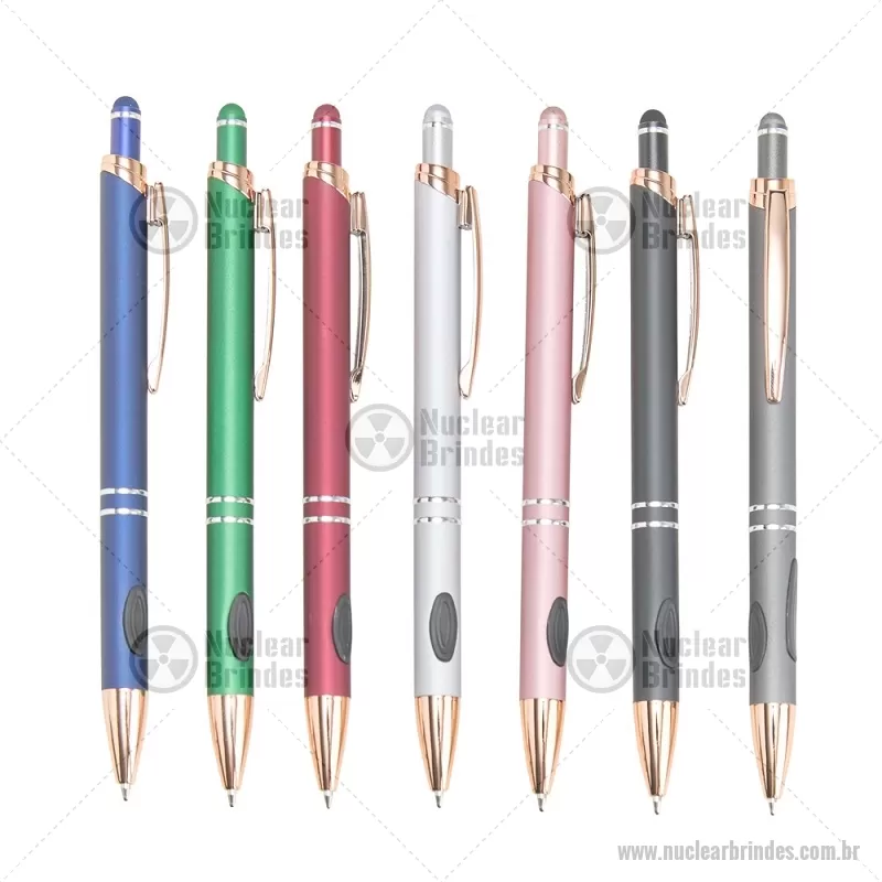 Caneta Metal Touch A elegância e o conforto combinados em uma única caneta esferográfica para garantir uma escrita mais agradável através da sua construção metálica e seu par de grips em borracha, além de ponta e clipe em plástico. Sua carga azul de 1.0 mm possui acionamento por clique com ponteira emborrachada que que permite seu uso como uma caneta touch para interação com smartphones, tablets e demais dispositivos de telas touchscreen. Largura : 1,5 cm x Circunferência : 4,5 cm x Comprimento : 14 cm Peso aproximado (g): 17 - Brindes Personalizados - NUCCMT293