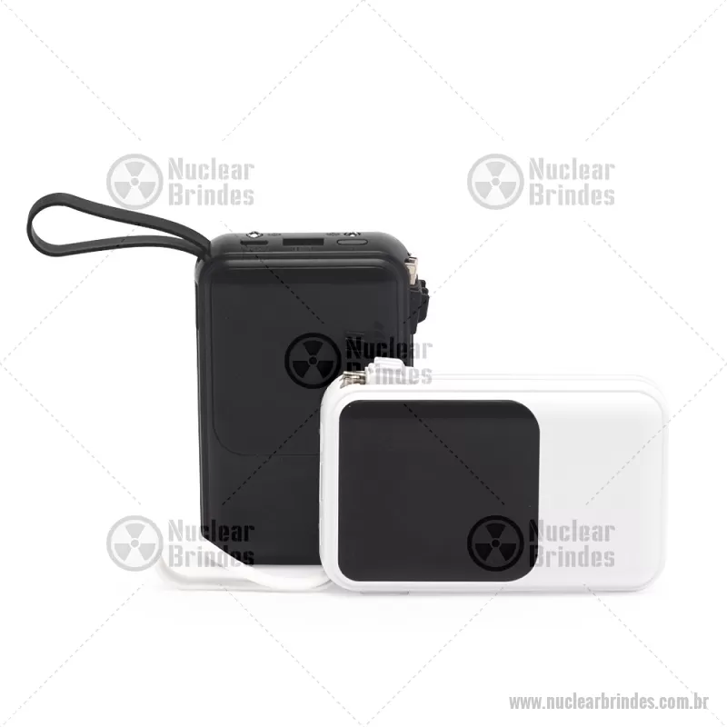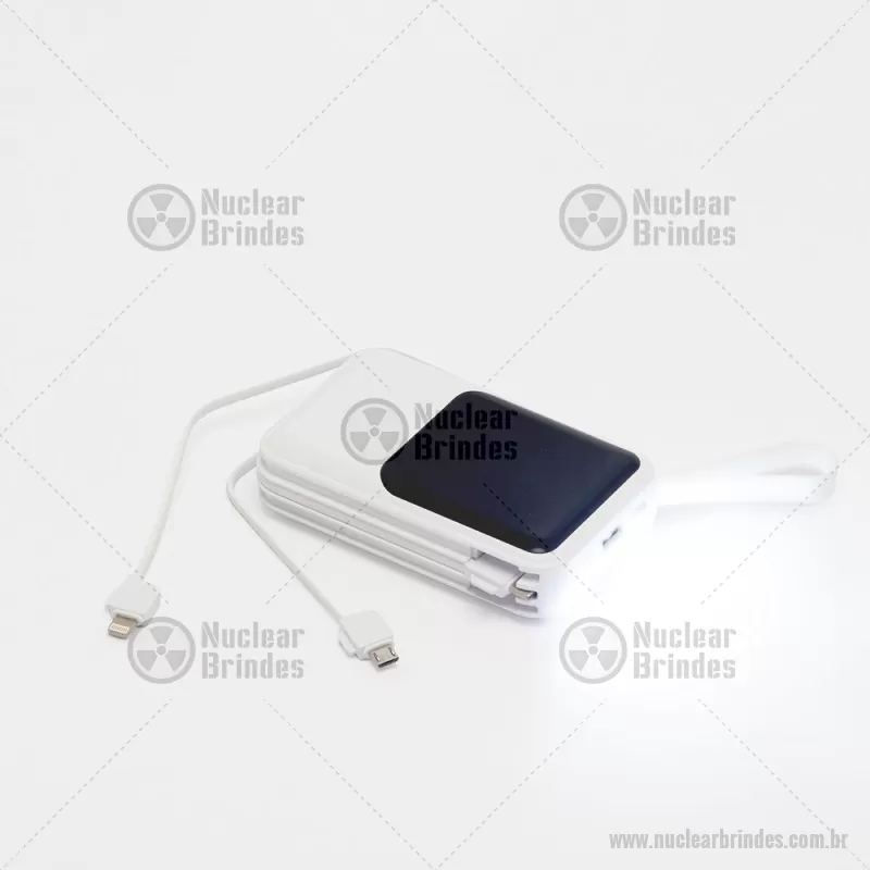 Power Bank 10.000mAh com Lanterna e Multissaídas Descrição: Carregador power bank de 10.000mAh com lanternas e múltiplas saídas. Fabricado em plástico com display integrado, este power bank vem equipado com quatro cabos de carregamento, eliminando a necessidade de transportar cabos extras. Compatível com entradas V8, Tipo-C, Lightning e USB, praticidade é o sinônimo deste carregador. Com alça de borracha e um tamanho compacto para um transporte discreto, ele possui uma capacidade real de 6.000mAh para manter os dispositivos sempre carregados. Acompanha cabo USB-V8. Altura : 10,6 cm x Largura : 6,7 cm x Espessura : 2,7 cm Peso aproximado (g): 215 - Brindes Personalizados - NUCTEC543