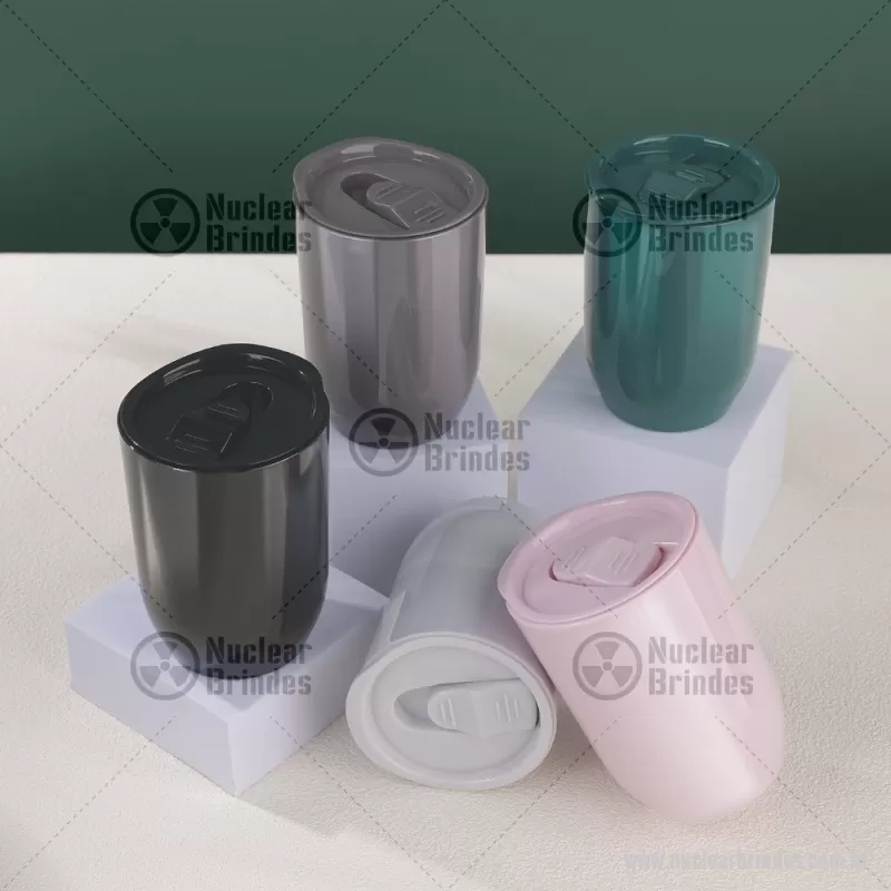 Copo plástico 350ml com tampa de pressão. Tampa com acesso e trava de segurança para o bocal. - Brindes Personalizados - NUCCPO126