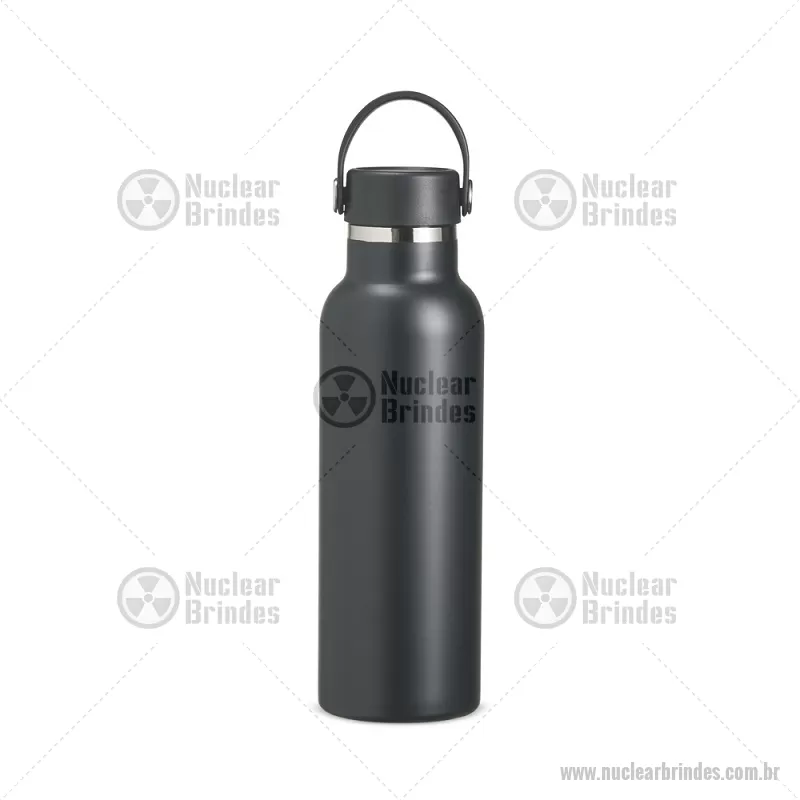 Garrafa térmica confeccionada em inox 304 com parede dupla, garantindo melhor conservação da temperatura. Possui capacidade de 550 ml, tampa rosqueável segura e alça integrada para facilitar o transporte. Prática e ideal para acompanhar a rotina em qualquer lugar. - Brindes Personalizados - NUCGAT161