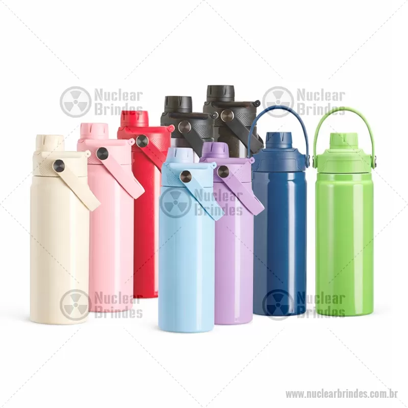 Garrafa térmica em inox com capacidade de 600ml, ideal para o dia a dia. Conta com estrutura de parede dupla e isolamento a vácuo, garantindo a conservação da temperatura de bebidas por mais tempo. Possui tampa plástica rosqueável com proteção para o bocal, além de alça fixa que facilita o transporte com praticidade e segurança. - Brindes Personalizados - NUCGAT174