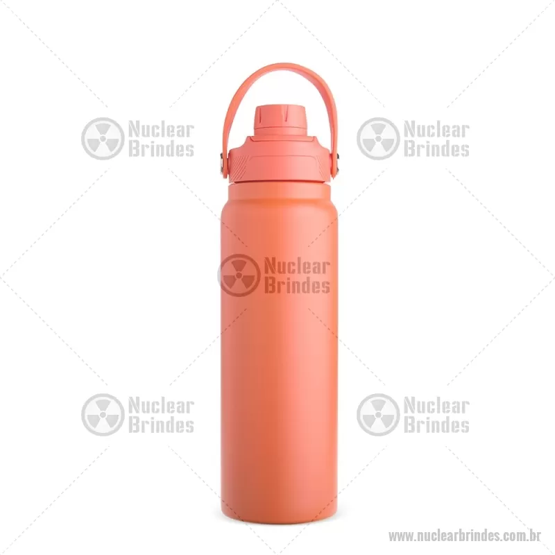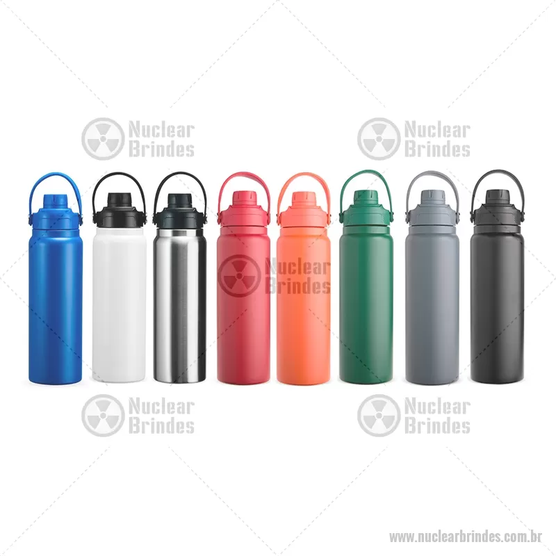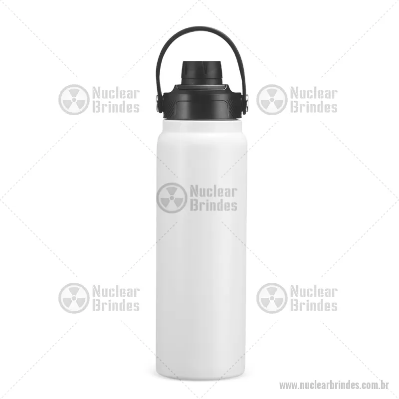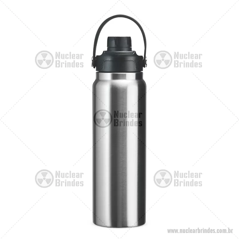 Garrafa térmica em aço inox com capacidade de até 800 ml, ideal para manter suas bebidas na temperatura certa por muito mais tempo. Possui estrutura de parede dupla com isolamento a vácuo, que conserva líquidos quentes ou frios sem transferência de calor para o exterior. Conta com tampa plástica rosqueável com proteção para o bocal, além de alça prática que facilita o transporte no dia a dia. - Brindes Personalizados - NUCGAT175