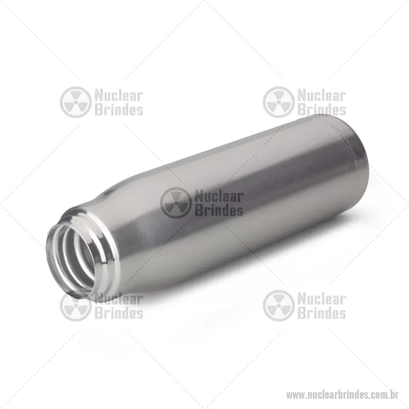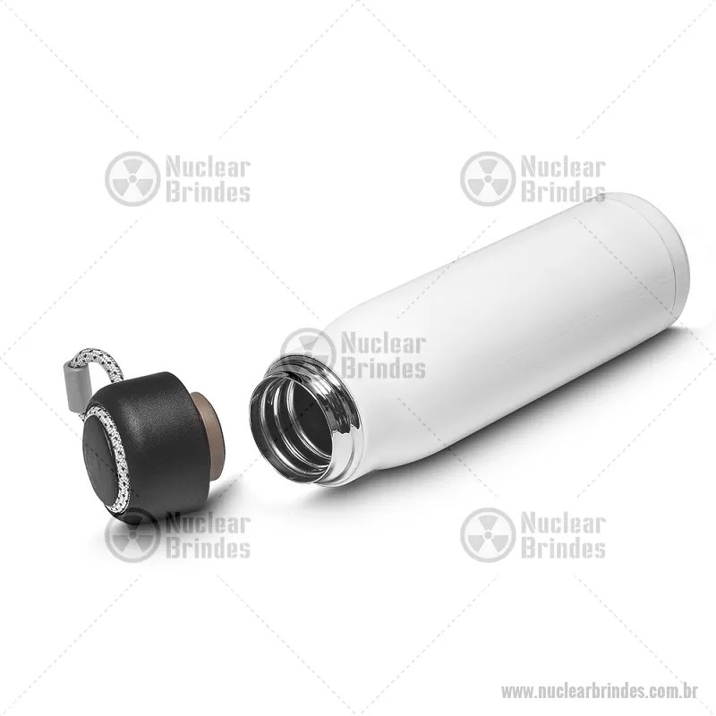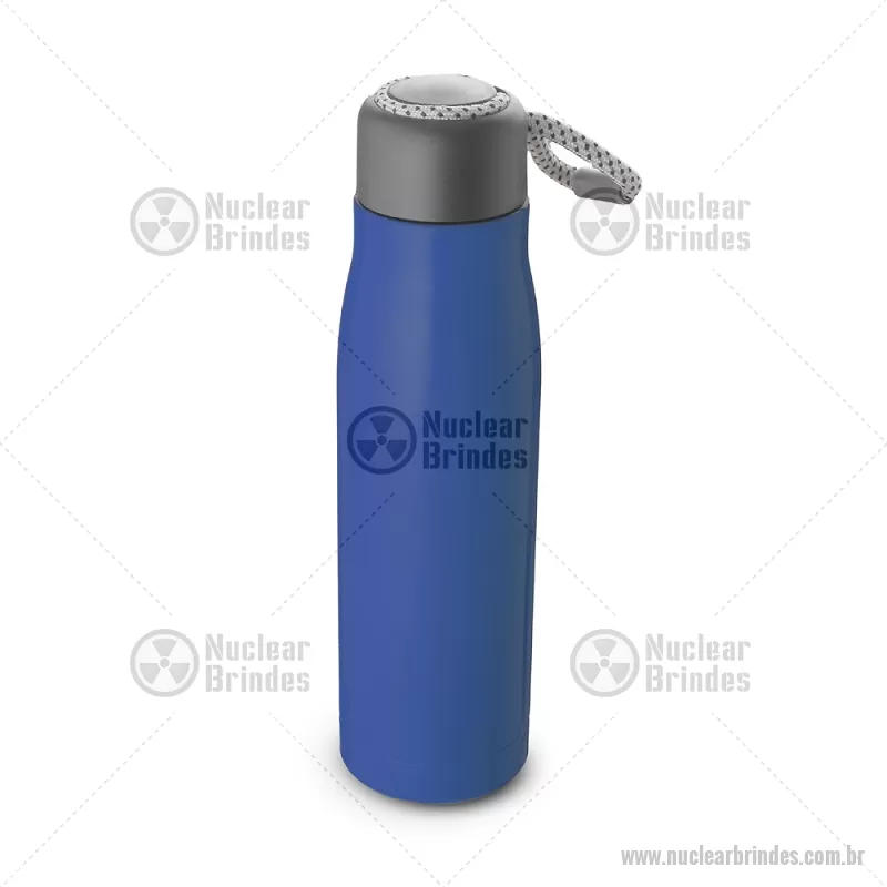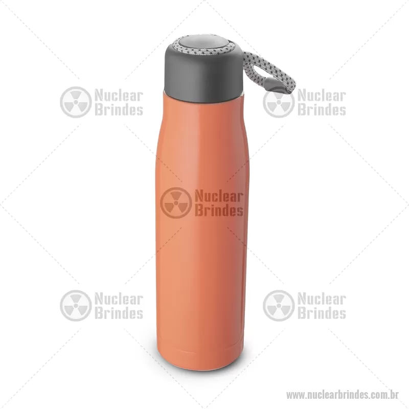Garrafa térmica em aço inox 550ml brilhoso com parede dupla isolada a vácuo, com alça em corda para facilitar o transporte. Tampa plástica rosqueável e anel de silicone para vedação. Conserva líquidos : ??8 horas ??12 horas Dimensão do produto: 25xø7cm (AxøD) Peso do produto: 0,252kg - Brindes Personalizados - NUCGAT101