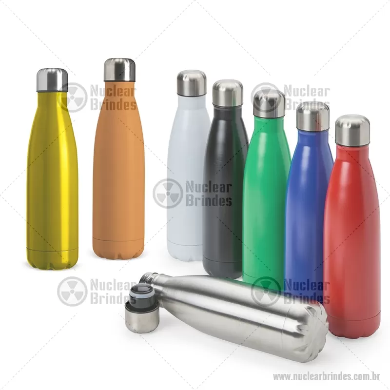Garrafa Térmica Com Tampa Inox com capacidade de até 500ml. Conta com tampa rosqueável e estrutura em parede dupla e isolamento a vácuo, que permite conservar a temperatura de líquidos por mais tempo. Altura : 26,5 cm x Largura : 6,5 cm x Circunferência : 22,8 cm Peso aproximado (g): 272 - Brindes Personalizados - NUCGAT157