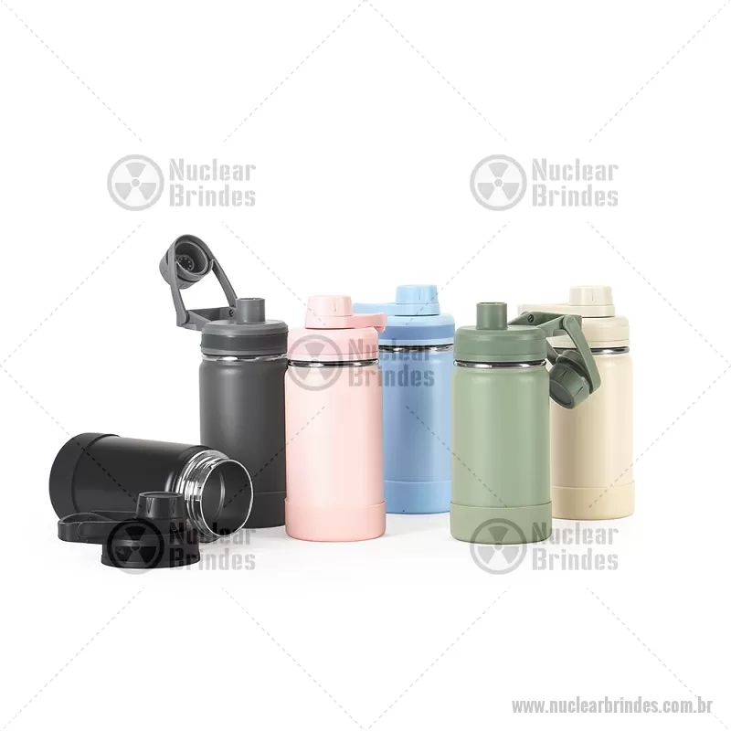 Garrafa Térmica 350ml Descrição: Garrafa térmica em inox, pintura eletrostática e capacidade para até 350ml. Conta com estrutura de parede dupla e vedação a vácuo, permitindo conservar a temperatura de líquidos por mais tempo. Possui tampa rosqueável com protetor para o bocal e alça fixa para facilitar o transporte. Acompanha protetor para a base em silicone. Altura : 18,2 cm x Largura : 10 cm x Circunferência : 23 cm Peso aproximado (g): 238 - Brindes Personalizados - NUCGAT158