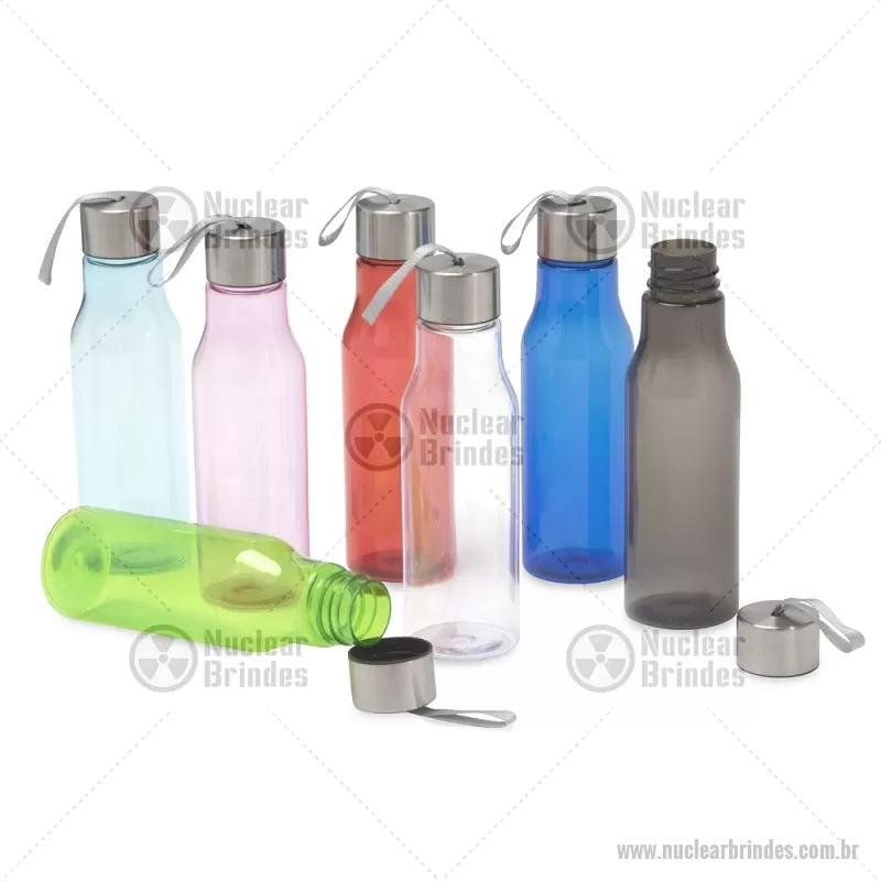 Garrafa Plástica 600ml com estrutura leve. Possui tampa rosqueável de alumínio com alça embutida em nylon para transporte. Altura : 23 cm x Largura : 6,8 cm x Circunferência : 21,3 cm Tamanho total aproximado (CxL): Diâmetro (sem tampa) - 3,5 cm Peso aproximado (g): 88 - Brindes Personalizados - NUCSQP129