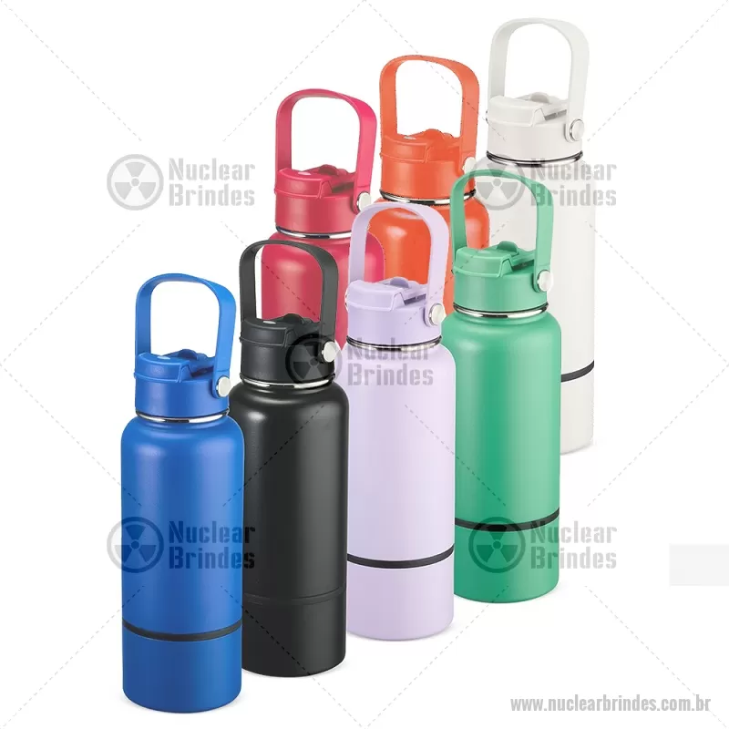 Garrafa térmica em inox com capacidade de 700 ml, desenvolvida para manter suas bebidas na temperatura ideal por muito mais tempo, graças à parede dupla com vedação a vácuo. Possui pintura eletrostática, que garante maior durabilidade e um acabamento sofisticado. Conta com tampa rosqueável com protetor de bocal, bico flip e canudo interno removível, oferecendo mais praticidade no dia a dia. Além disso, possui fundo removível e alça fixa para facilitar o transporte — perfeita para acompanhar sua rotina com conforto, resistência e estilo. Altura : 26 cm x Largura : 9 cm x Circunferência : 28,5 cm Peso aproximado (g): 481 - Brindes Personalizados - NUCGAT165