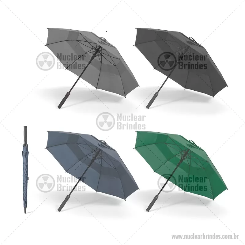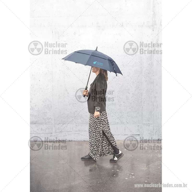 Guarda-chuva em 100% poliéster reciclado 190T (100% rPET) com abertura automática, com varetas em fibra de vidro e pega em ABS reciclado. Guarda-chuva com abertura automática e à prova de vento. Fornecido em bolsa de poliéster reciclado. Medidas:ø1055 x 840 mm Peso do Produto (g.): 543 - Brindes Personalizados - NUCGCH051