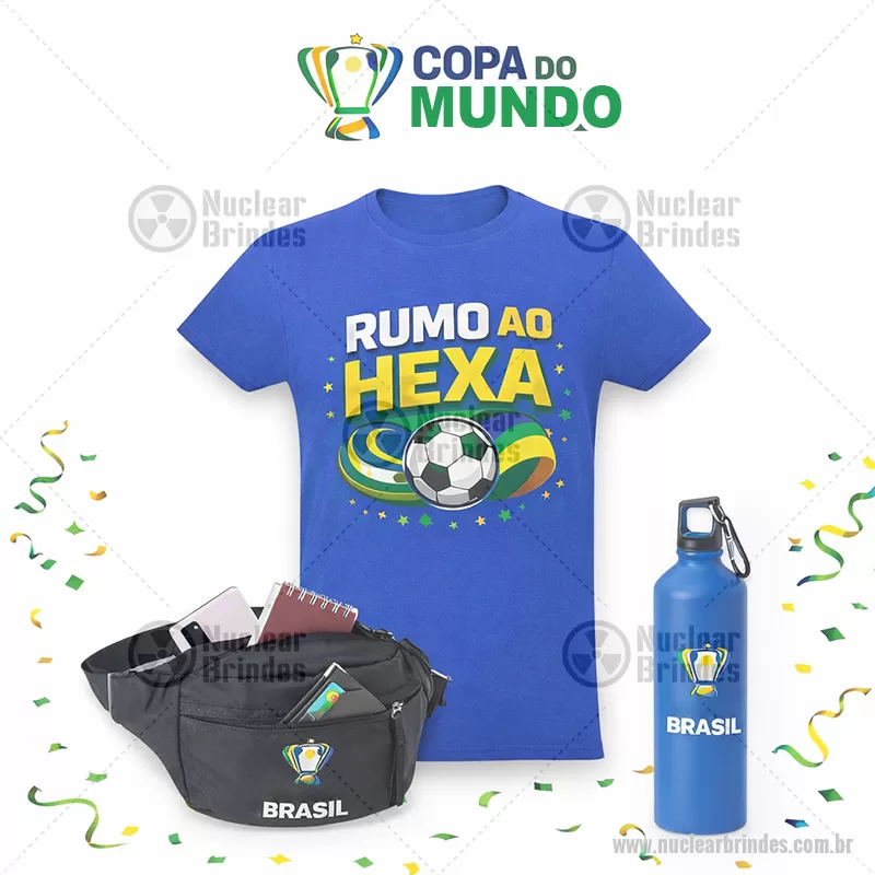 Kit Carnaval 3 Peças Kit Torcedor Copa do Mundo - Vai Brasil Contém: 1 Pochete de Poliéster com três compartimentos bem distribuídos, ela oferece um bolso traseiro seguro e de fácil acesso, um bolso central com rede interna para separar e organizar itens, além de um bolso frontal ideal para objetos menores. Com alça de nylon ajustável para se adaptar a cada pessoa. - Gravação em Silk screen 1 cor (POC013) 1 Squeeze Alumínio com Acabamento Matt. Com tampaem PP mosquetão rosqueável. Capacidade até 800 ml. Food grade. ø73 x 259 mm. - Gravação em Silk screen 1 cor (SQM052) 1 Camiseta unissex de corte regular em malha 100% polyester fiado (135 g/m2) com fio 30/1 polyester. Com gola em ribana 1,5x1,5 com fita de reforço e com costura dupla nas mangas, barra de fundo e laterais. Tamanhos: P, M, G, GG - Gravação em Transfer Colorido (CMS006) * Verificar cores de produtos Disponíveis. - Brindes Personalizados - NUCKIT031