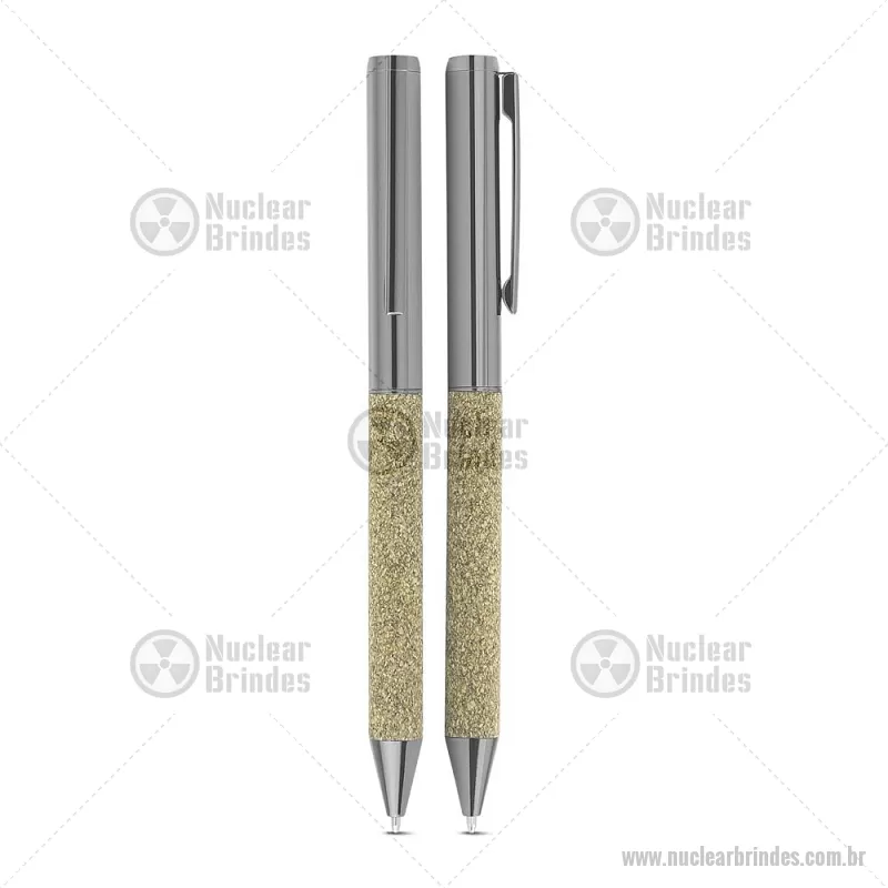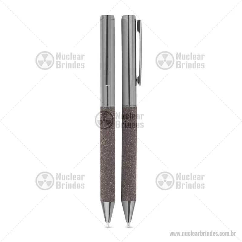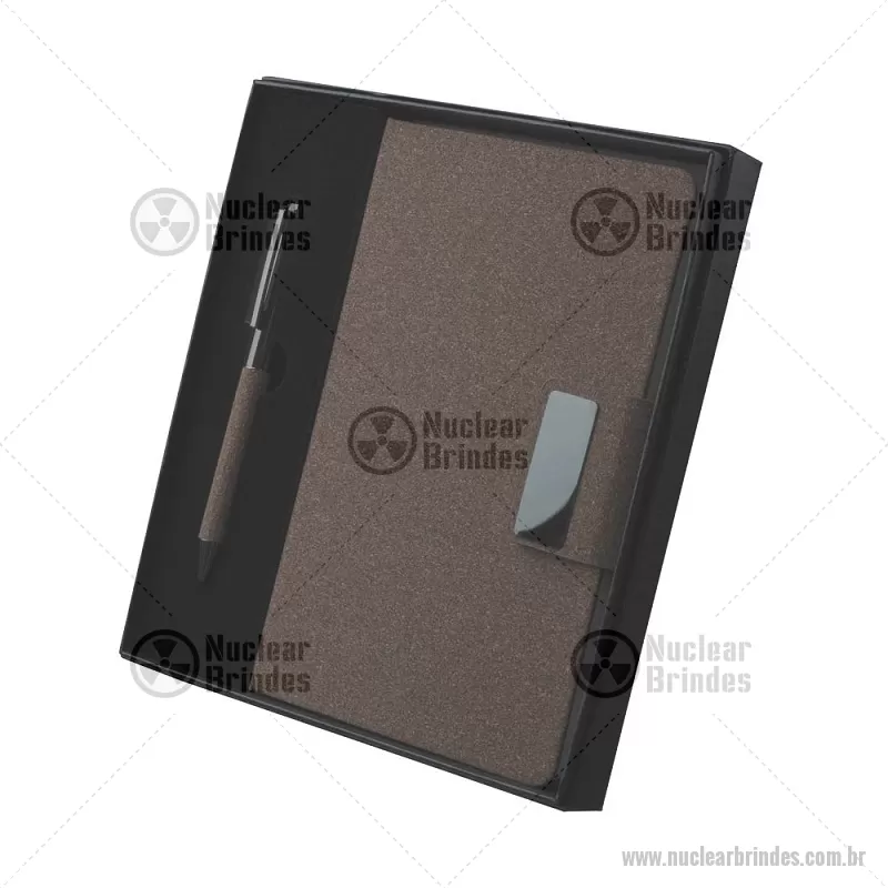 Kit escritório A5 em PU e fibra de café ou chá e Caneta Metalica Kit de Escritório composto por caderno tamanho A5, com capa em PU e detalhe em fibra de chá ou café, contendo 80 folhas pautadas de 70g/m². Acompanha caneta metálica com acabamento no mesmo material de fibra, formando um conjunto elegante e sofisticado. O kit acompanha estojo de papelão na cor preta. Peso do Produto: 0,234kg (Caderno) Peso do Produto: 0,022kg (Caneta) Dimensão do produto: 20,7x13,2cm (Caderno) (AxL) Dimensão Produto: 14xø1cm (Caneta) (AxL) Dimensão do produto: (Estojo) (AxL) 21x20,5 cm - Brindes Personalizados - NUCKES081