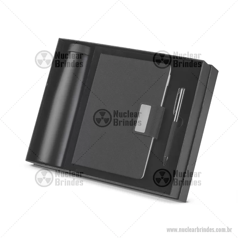 Kit escritório Caderno, Garrafa e Caneta Metalica Conjunto composto por caderno em material RPET com fechamento magnético,com 100 páginas, caneta modelo twist com detalhe em tecido RPET preto e garrafa de parede dupla em inox (304 interno e 201 externo), com capacidade de 550ml. Acompanha caixa presenteável. Peso do Produto: 0,256kg (Caderno) Peso do Produto: 0,277kg (Garrafa) Peso do Produto: 0,019kg (Caneta) Peso do Produto: 0,491kg (Caixa) Dimensão do Produto: 23,5x7,1cm (Garrafa) Dimensão do Produto: 21x14,5cm (Caderno) Dimensão do Produto: 7,6x30x24,7cm (Estojo presenteável) - Brindes Personalizados - NUCKES083