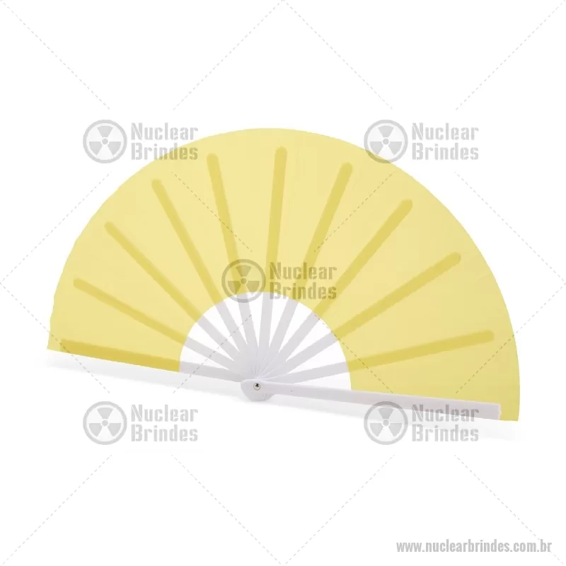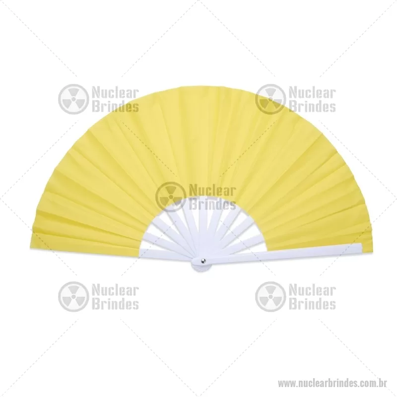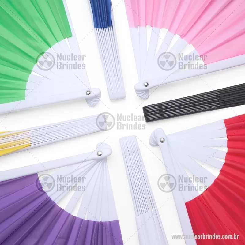 Leque confeccionado com estrutura em plástico resistente e revestimento em tecido tafetá. Leve, prático e ideal para proporcionar frescor em dias quentes, sendo fácil de transportar e usar no dia a dia. - Brindes Personalizados - NUCFEM122