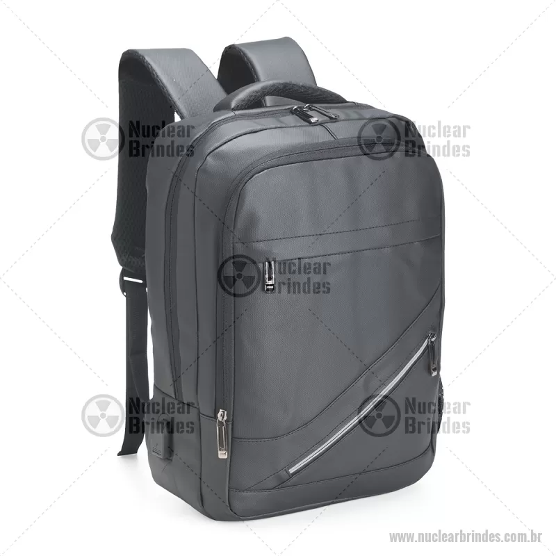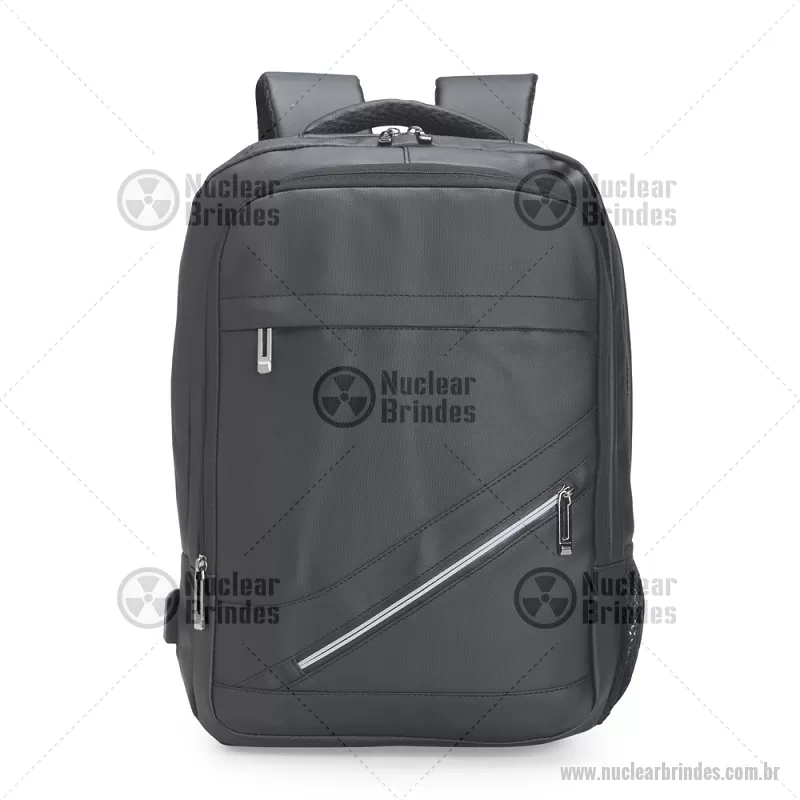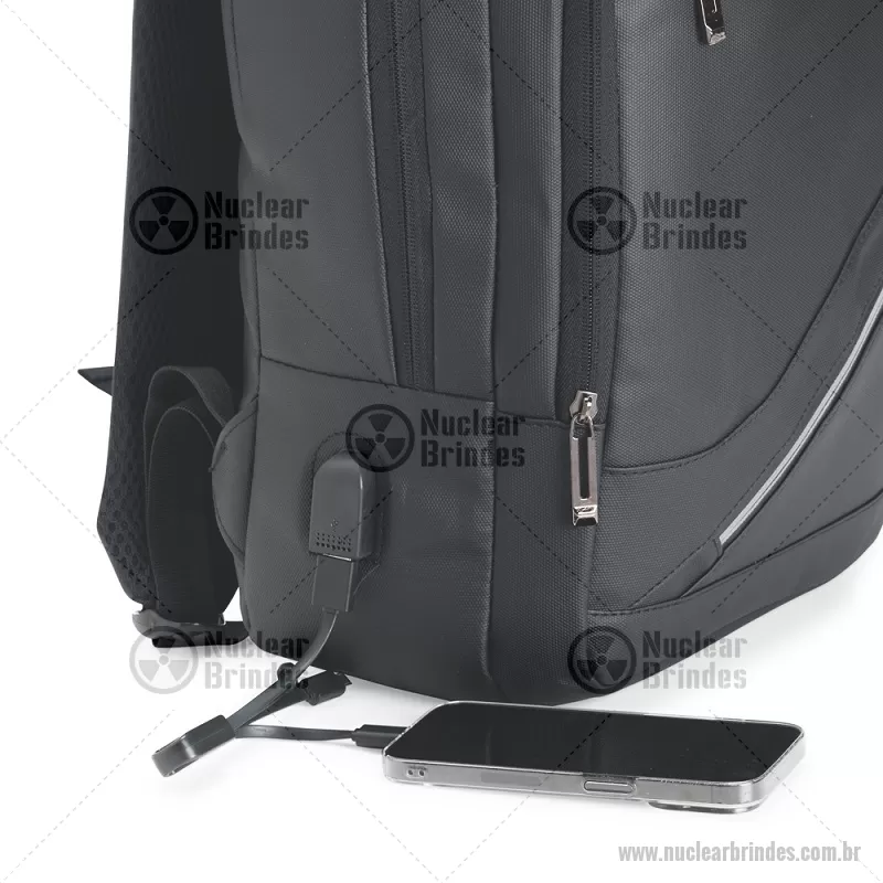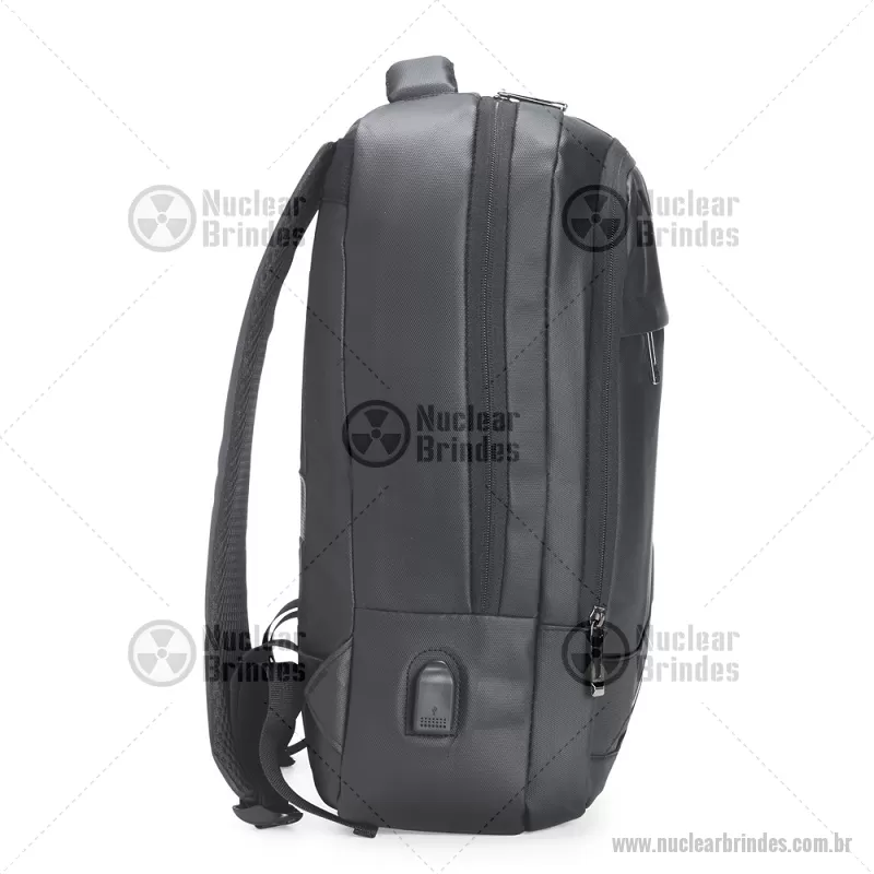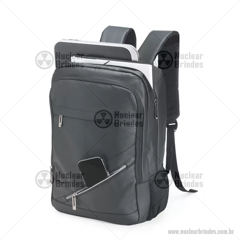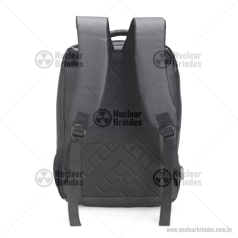 Mochila Couro Sintético 26L Mochila em couro sintético impermeável com capacidade máxima de 26 litros. Possui compartimento principal com divisória para notebook de até 15,6 polegadas, além de dois compartimentos frontais em tamanhos diferentes, bolso lateral em malha com elástico e suporte USB. Conta ainda com alça de mão e duas alças para as costas com revestimento em tecido respirável. Altura : 40 cm x Largura : 30 cm x Profundidade : 13 cm Peso aproximado (g): 540 - Brindes Personalizados - NUCMC242