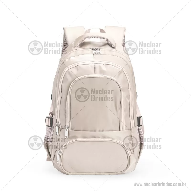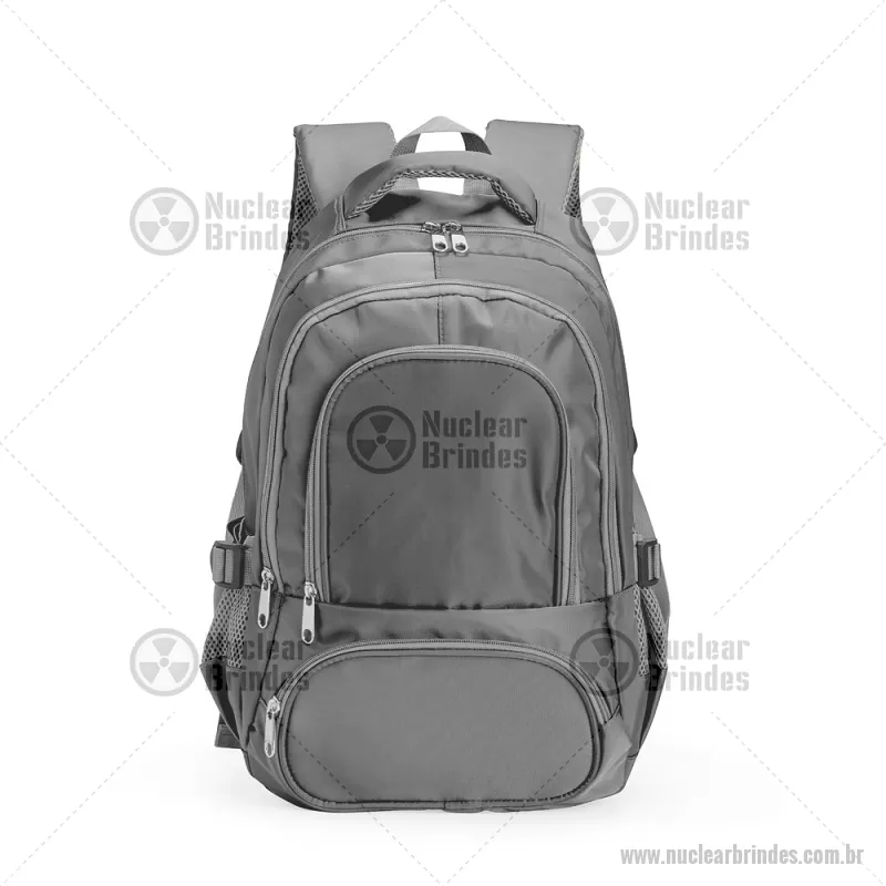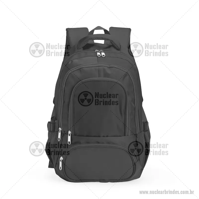 Mochila Poliéster 17 Litros Descrição: Mochila feita em poliéster impermeável com capacidade de até 17 litros. Possui compartimento interno que inclui um pequeno bolso com zíper e divisória acolchoada para notebooks de até 14 polegadas. Conta ainda com três bolsos externos em tamanhos diferentes e mais dois bolsos laterais em tela com regulagem. As alças de costas e de mão possuem revestimento espumado. Altura : 37 cm x Largura : 31 cm x Profundidade : 15 cm Peso aproximado (g): 463 - Brindes Personalizados - NUCMC246