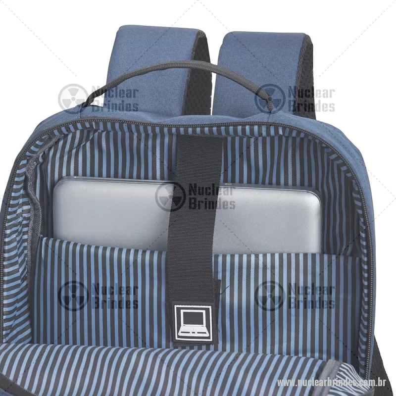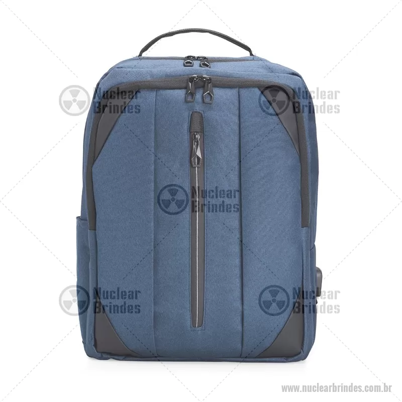 Mochila de nylon 27 litros com três compartimentos, sendo o principal com bolso para notebook 15.6 polegadas. Com divisórias internas para acessórios, bolso lateral, alça para engate em malas de viagem e suporte externo usb. - Brindes Personalizados - NUCMC196