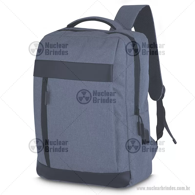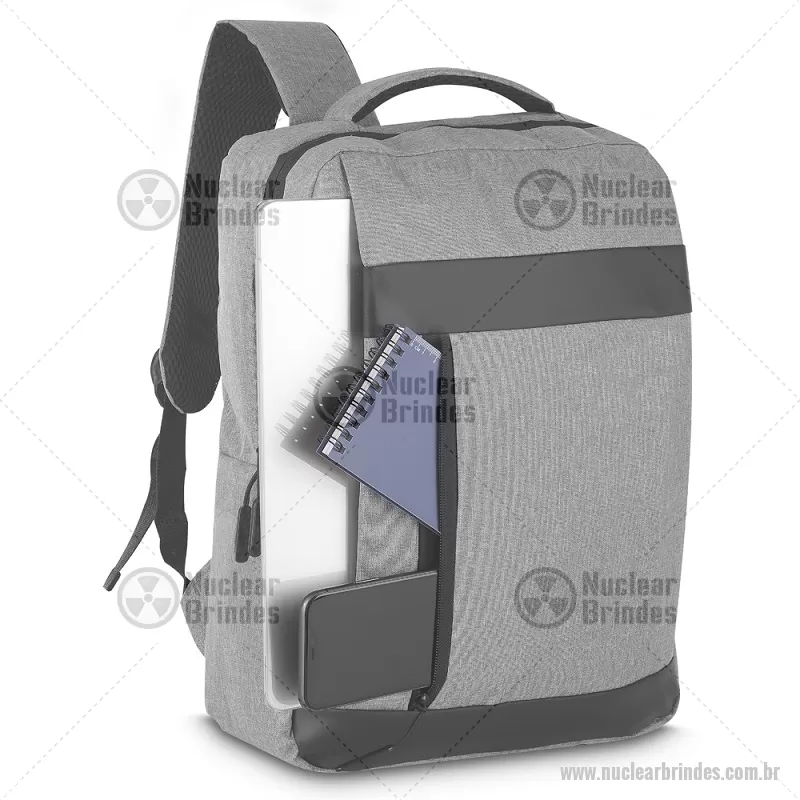 Mochila para Notebook em Poliéster 600D Parte externa: Alças de mão e de ombro acolchoadas; 2 bolsos frontais com zíper; Conector USB na lateral; Parte interna: Compartimento para Notebook, Tamanho total do Notebook - 15,6" Dimensão Produto: 40x31x12cm (AxLxP) Peso do Produto: 0,428kg Volume: 15L - Brindes Personalizados - NUCMC244