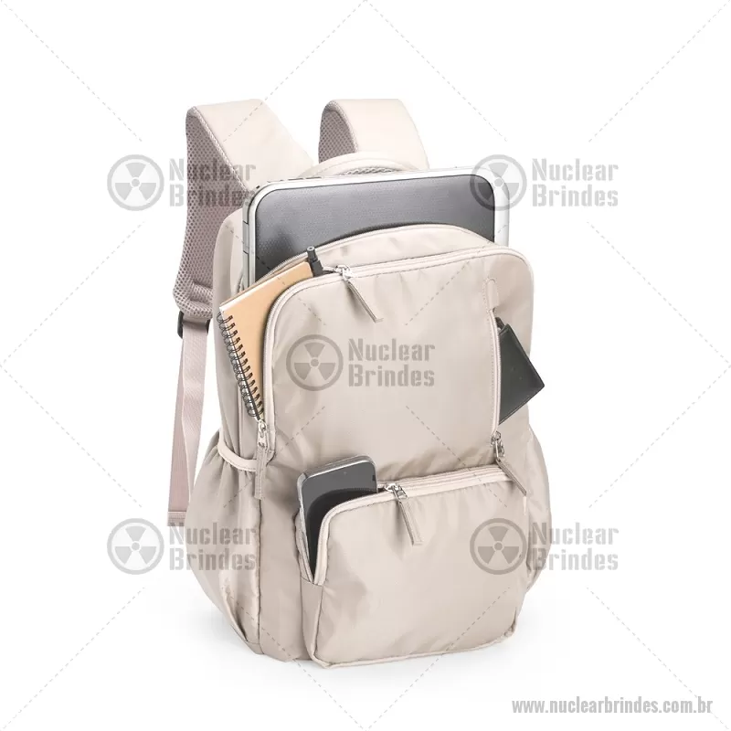 Mochila Poliéster 23L Descrição: Mochila de design ágil, feita em poliéster impermeável e pronta para encarar qualquer rotina. Com capacidade máxima de 23 litros, o compartimento interno traz uma divisória ideal para guardar notebooks de até 15,6 polegadas. Além disso, conta com três bolsos frontais em diferentes tamanhos e outros dois, posicionados nas laterais, com elástico. As alças e região das costas possuem revestimento em espuma respirável para maior conforto durante o uso. Altura : 42 cm x Largura : 28 cm x Profundidade : 13 cm Peso aproximado (g): 450 - Brindes Personalizados - NUCMC245