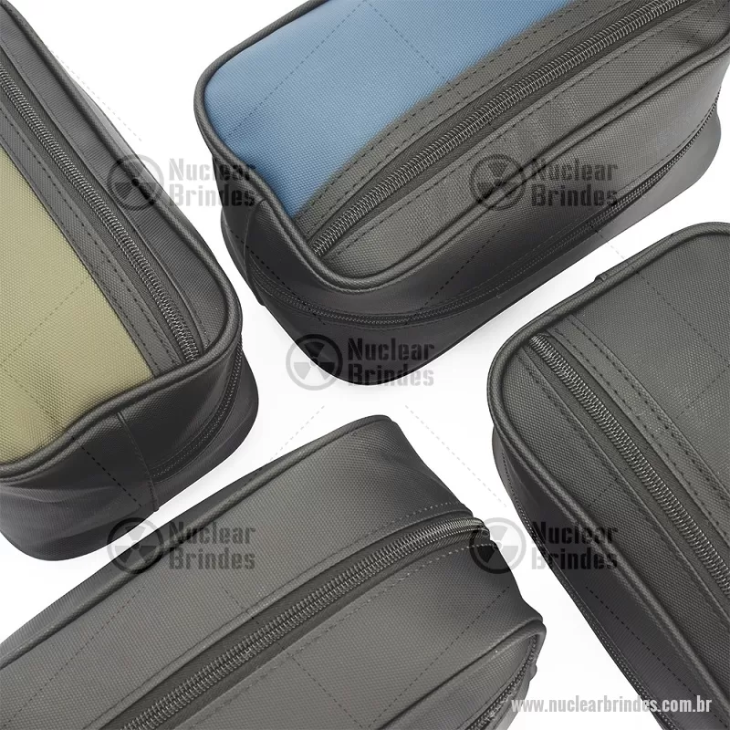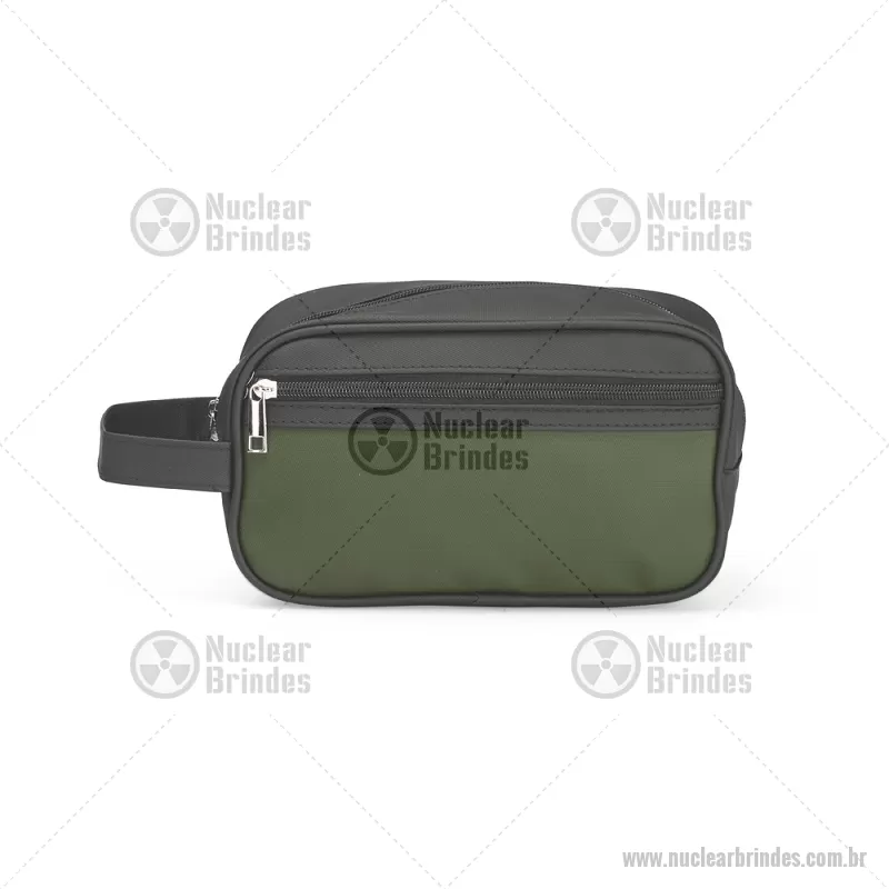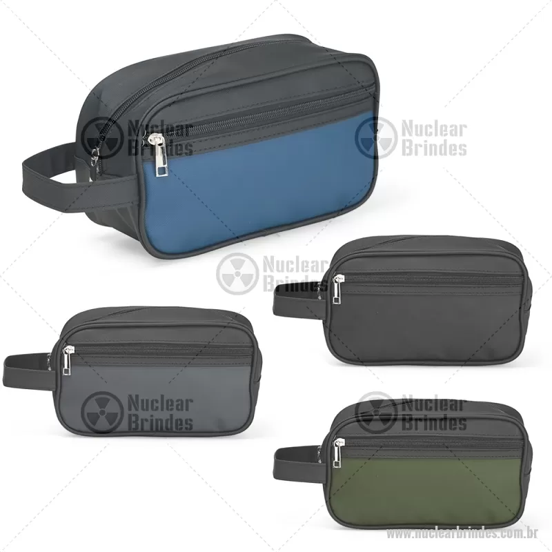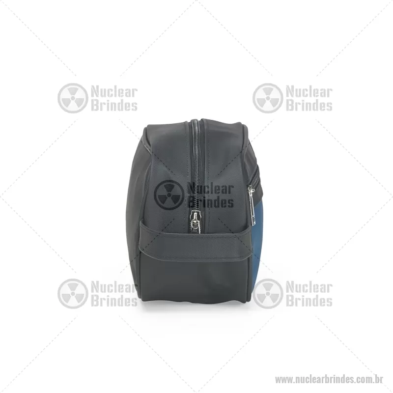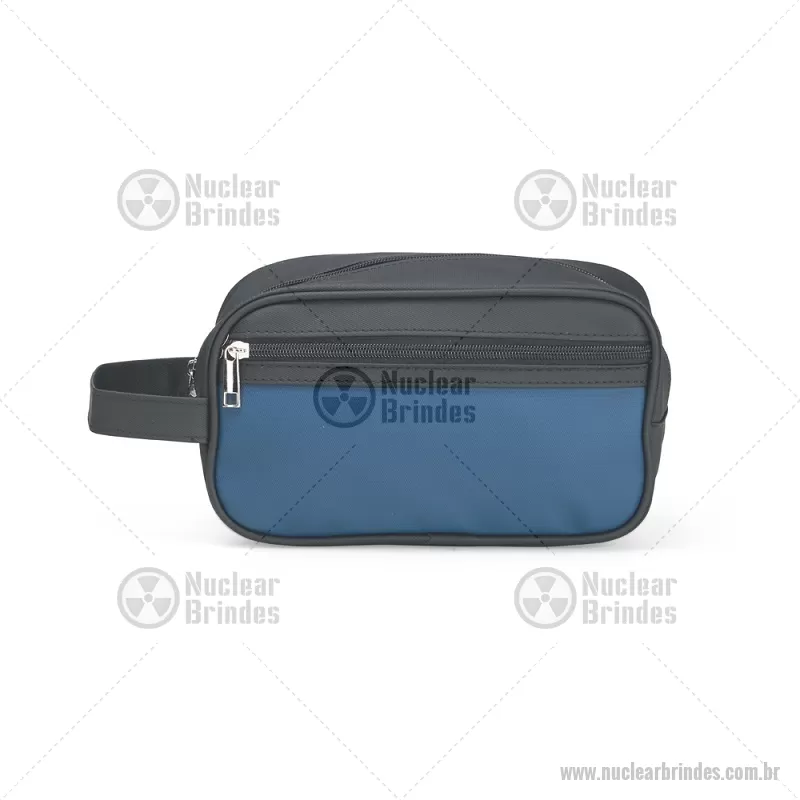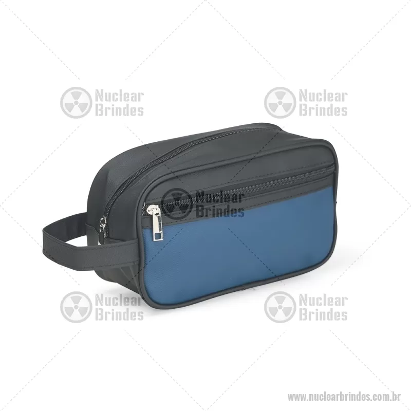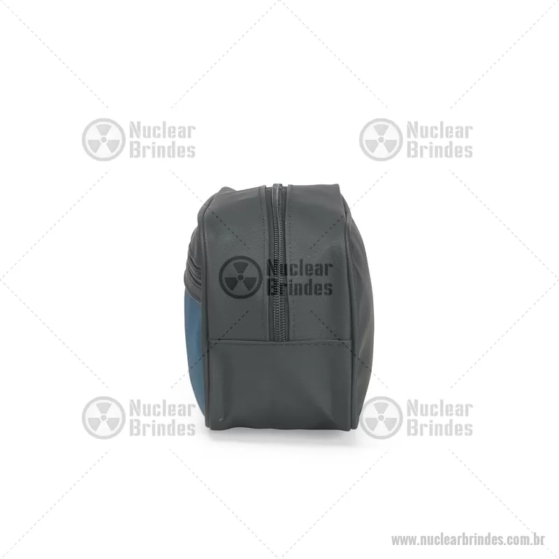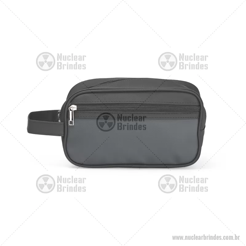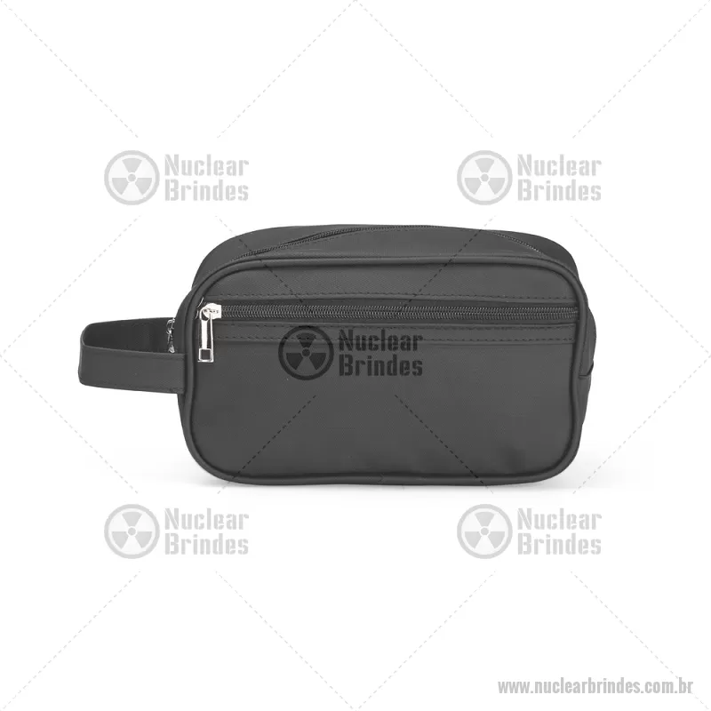 Nécessaire em couro sintético impermeável com fechamento em zíper. Possui bolso frontal também com zíper e alça lateral de mão. Altura : 14 cm x Largura : 24 cm x Profundidade : 9,5 cm Peso aproximado (g): 173 - Brindes Personalizados - NUCNC154