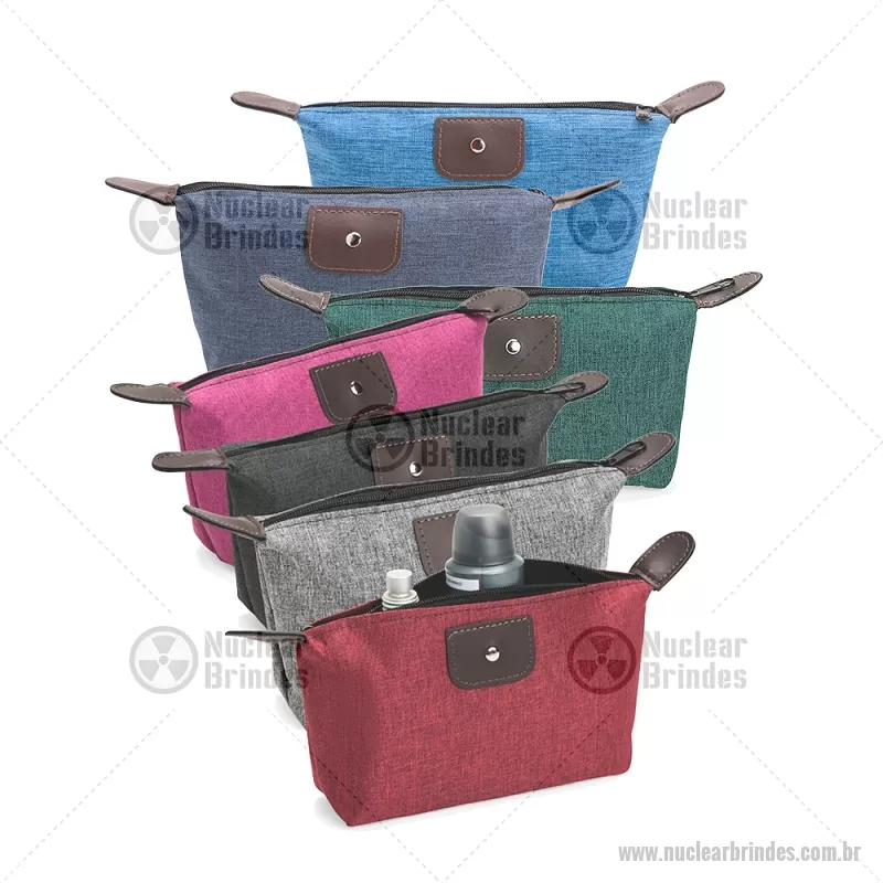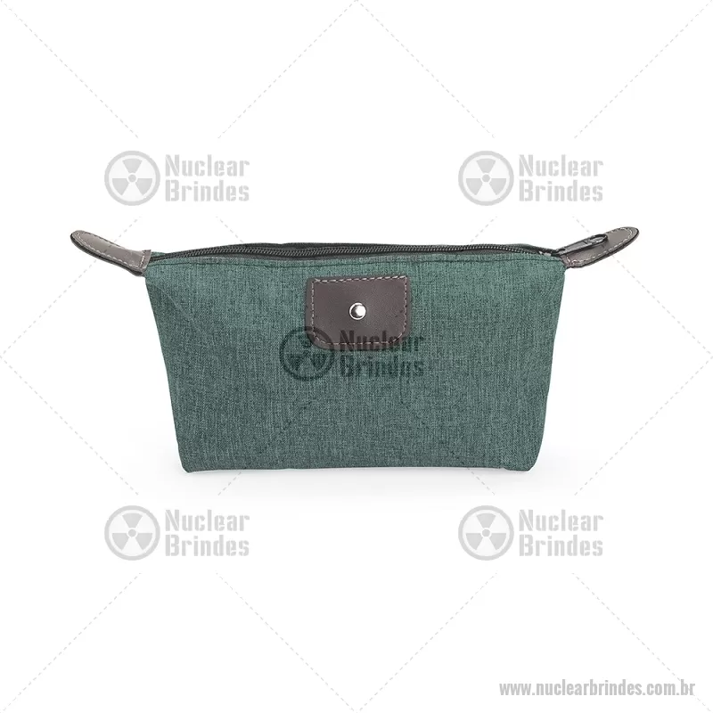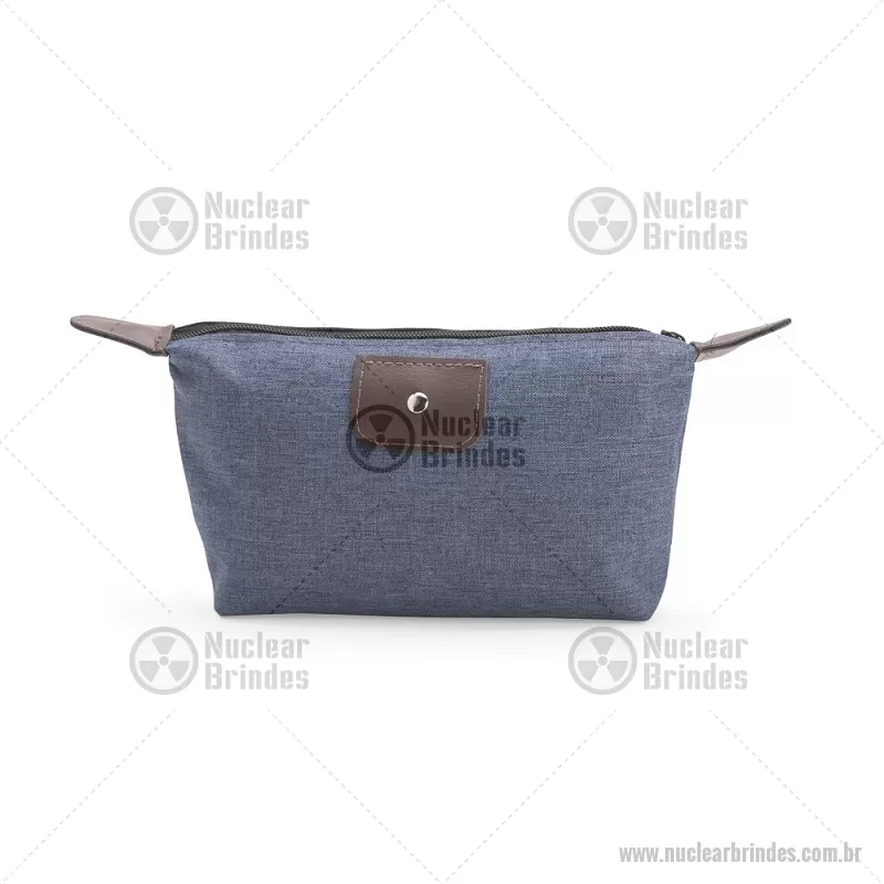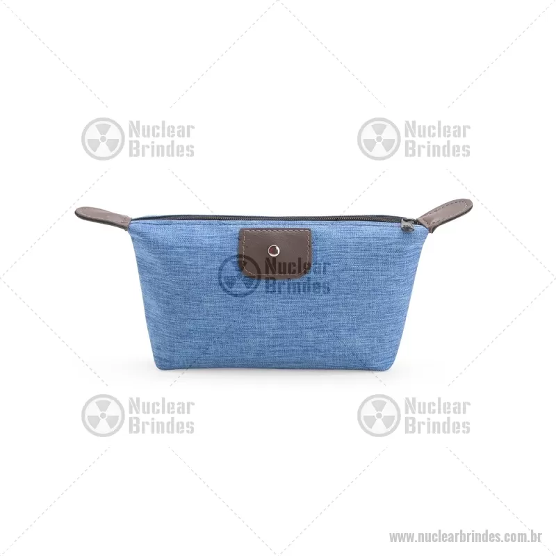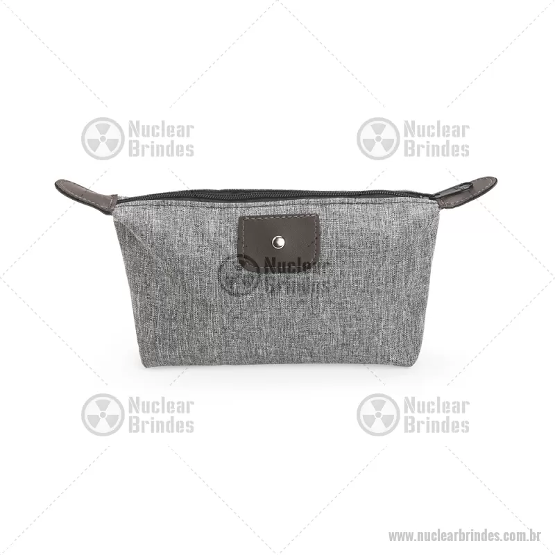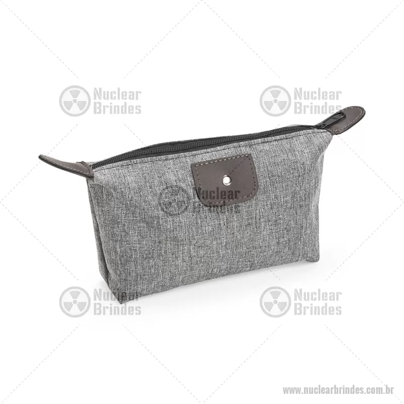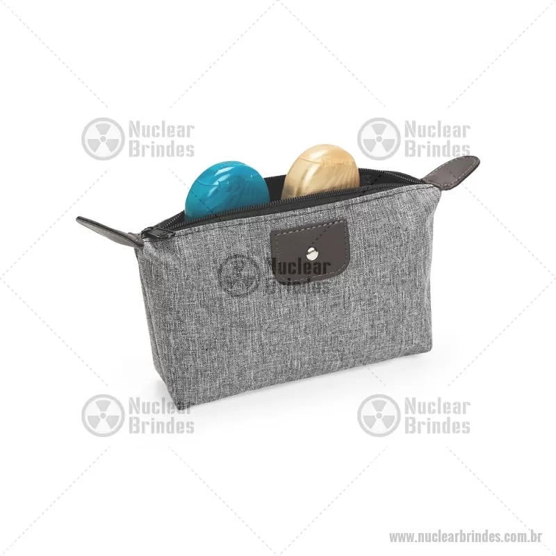 Nécessaire compacto em poliéster com mescla de PVC resistente à água. Possui fechamento em zíper e acabamento com detalhes em bidim e metal, oferecendo praticidade e um visual moderno para organizar pequenos itens do dia a dia. - Brindes Personalizados - NUCNC150