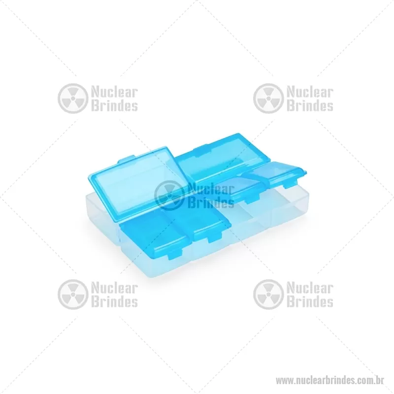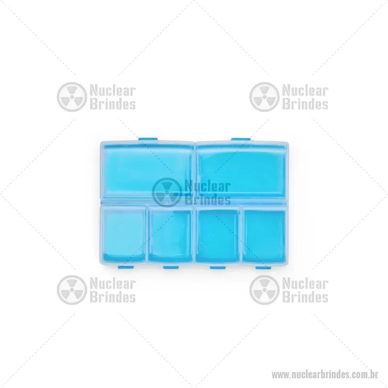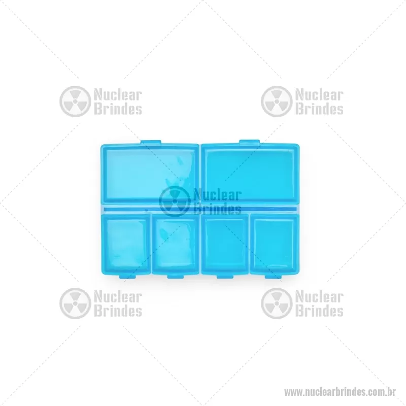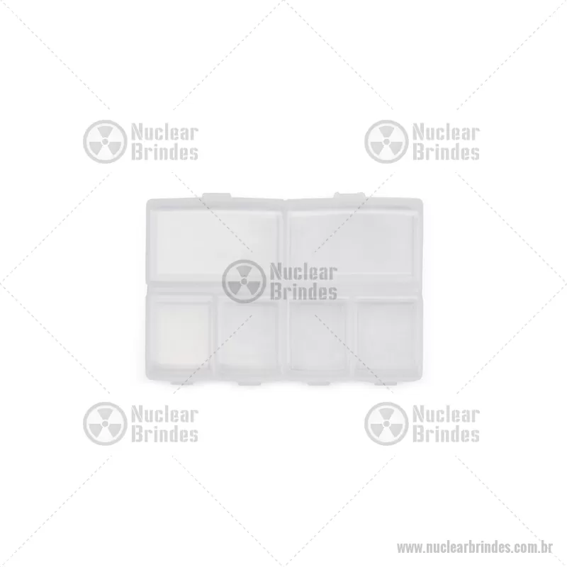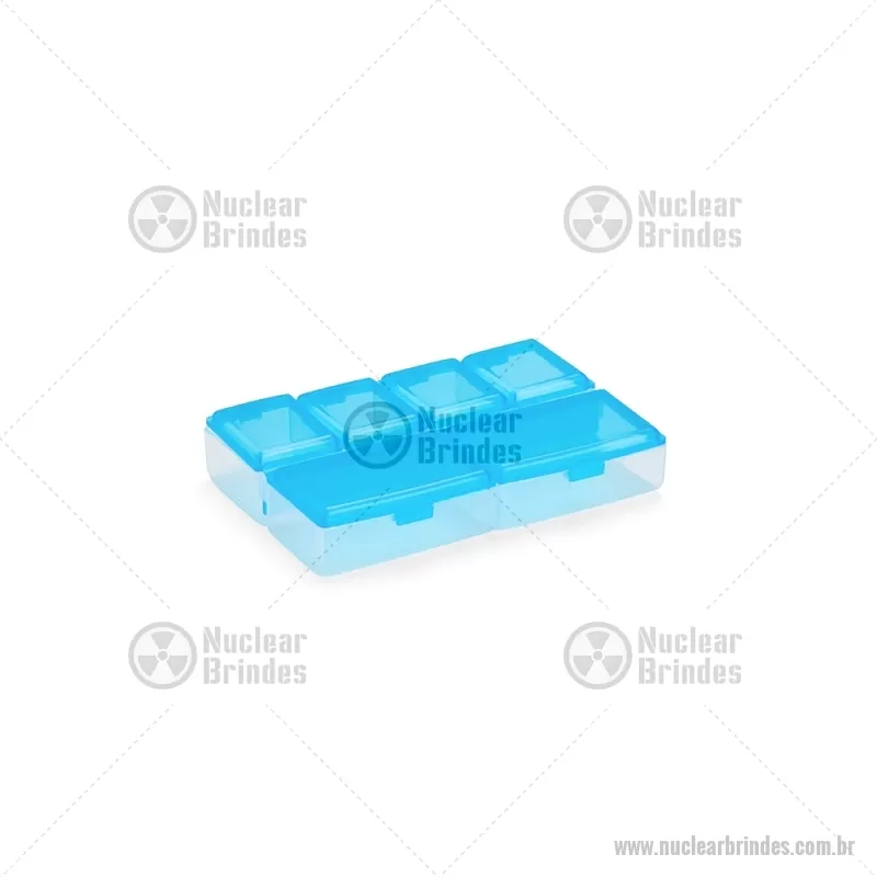 Porta-Comprimidos Plástico Descrição: Porta-comprimidos em plástico com seis compartimentos, dois maiores e outros quatro menores, oferecendo mais possibilidades de organização. Largura : 6,4 cm x Espessura : 1,9 cm x Comprimento : 9,5 cm Peso aproximado (g): 23 - Brindes Personalizados - NUCPCP015