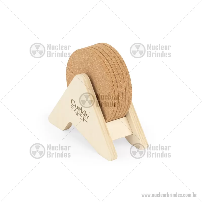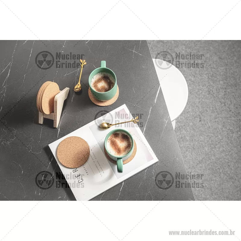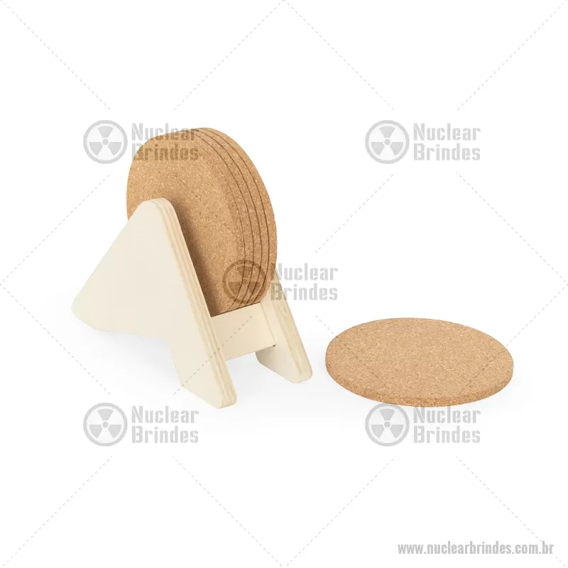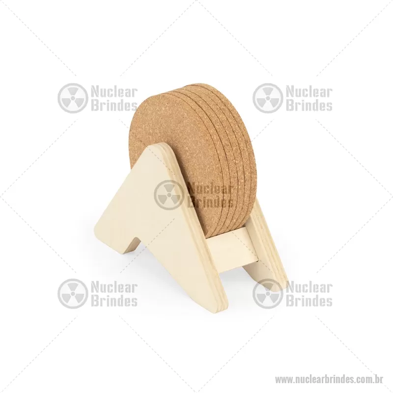 Porta copos em madeira com 6 bases para copos em cortiça. Desfrute da sua bebida evitando marcas na mesa. Certificação EU Food Grade. A cor e o resultado da impressão nos materiais naturais pode variar entre produtos. medidas: 140 x 92 x 78 mm Peso do Produto (g.): 80 - Brindes Personalizados - NUCPCO010
