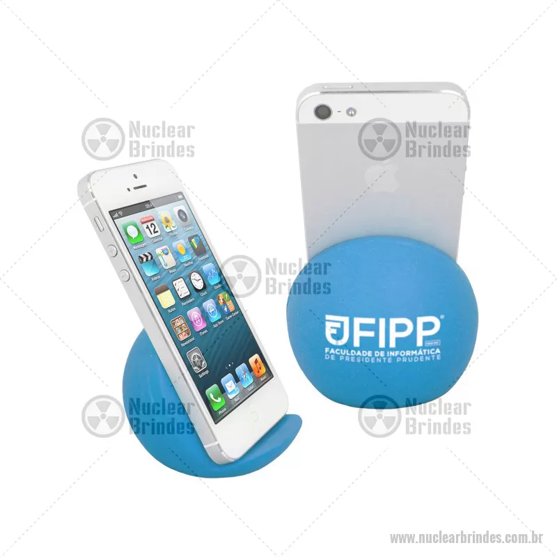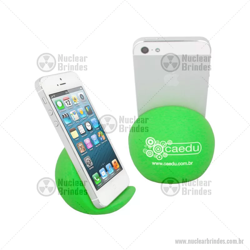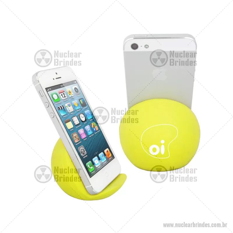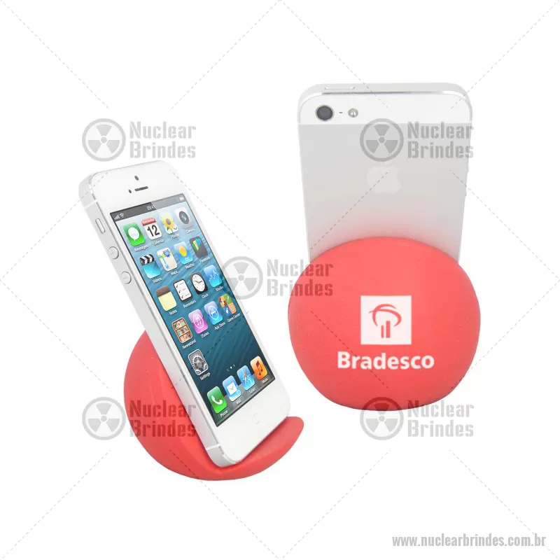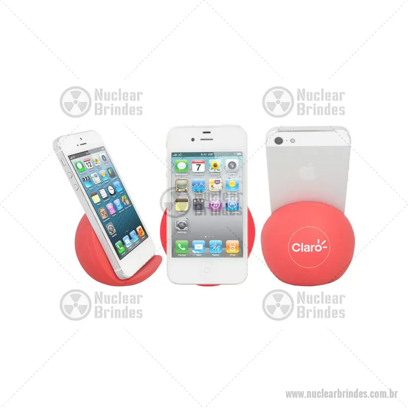 Porta celular / Apoio para smartphone de mesa Personalizado. Feito em vinil oca e disponível em várias cores. Material: Vinil - Especificação: Vinil (Policloreto de vinil) Disponível nas cores: vermelho, azul, azul escuro, azul claro, verde, verde escuro, verde claro, amarelo, laranja, preto, branco. Informação: Pantones específicos a partir de 1000 peças. Tipo de gravação: Tampografia Area de gravação: 40mm Ø Medida Produto: 65mm A x 75mm L x 70mm Peso: 45g Quantidade Mínima: 100 un - Brindes Personalizados - NUCTEC065