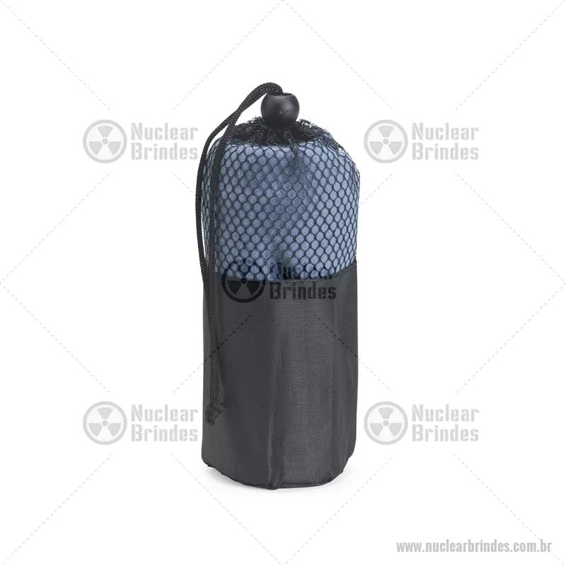 Toalha em poliéster de toque macio e alta absorção, ideal para uso diário ou atividades ao ar livre. Possui alça elástica lateral para facilitar o manuseio e acompanha saco de nylon para armazenamento prático. - Brindes Personalizados - NUCTO024