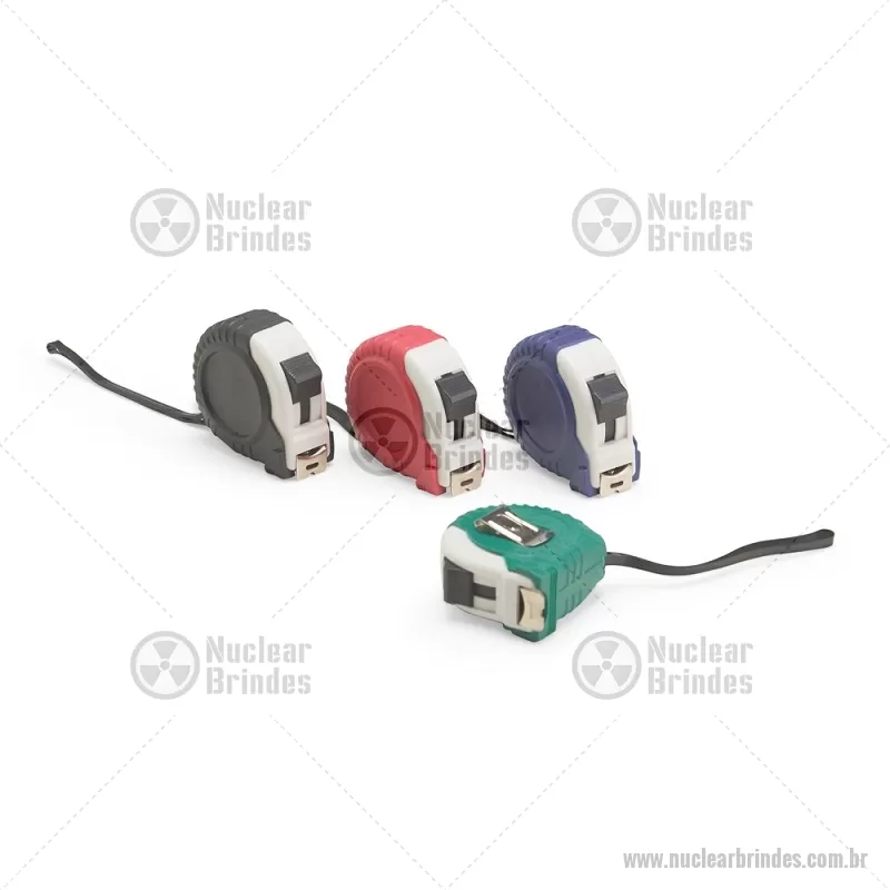 Trena Emborrachada 5 Metros com presilha metálica e detalhes em plástico, incluindo alça para transporte. Conta com fita de medição com alcance máximo de 5 metros, exibindo também medidas em pés e polegadas. Possui ainda uma trava de segurança de fácil acionamento: basta deslizar que a fita é contida totalmente no ponto desejado. Altura : 7 cm x Largura : 7,2 cm x Espessura : 3,7 cm Comprimento : c/ alça: 12,5 cm Peso aproximado (g): 170 - Brindes Personalizados - NUCFTR009B